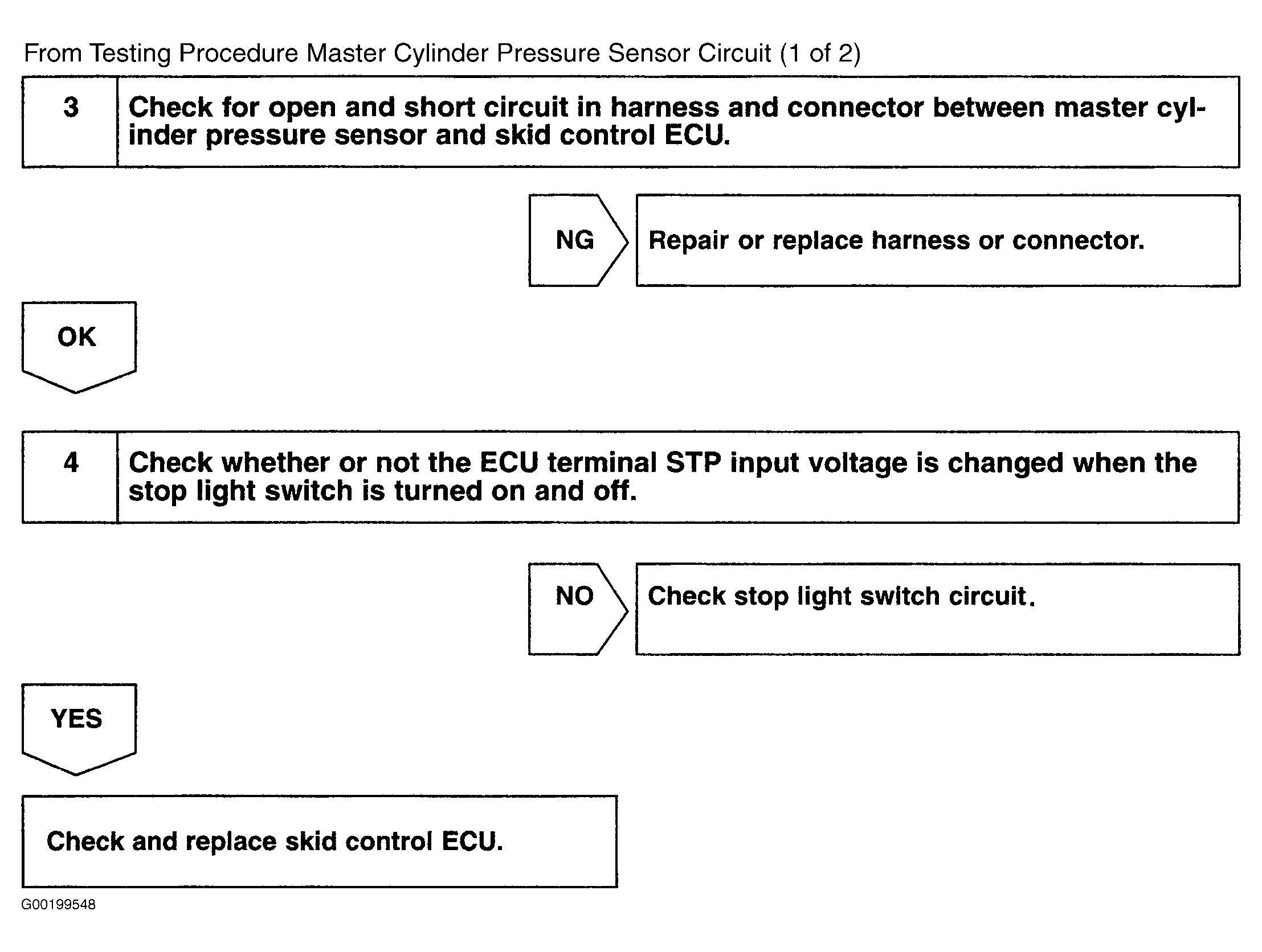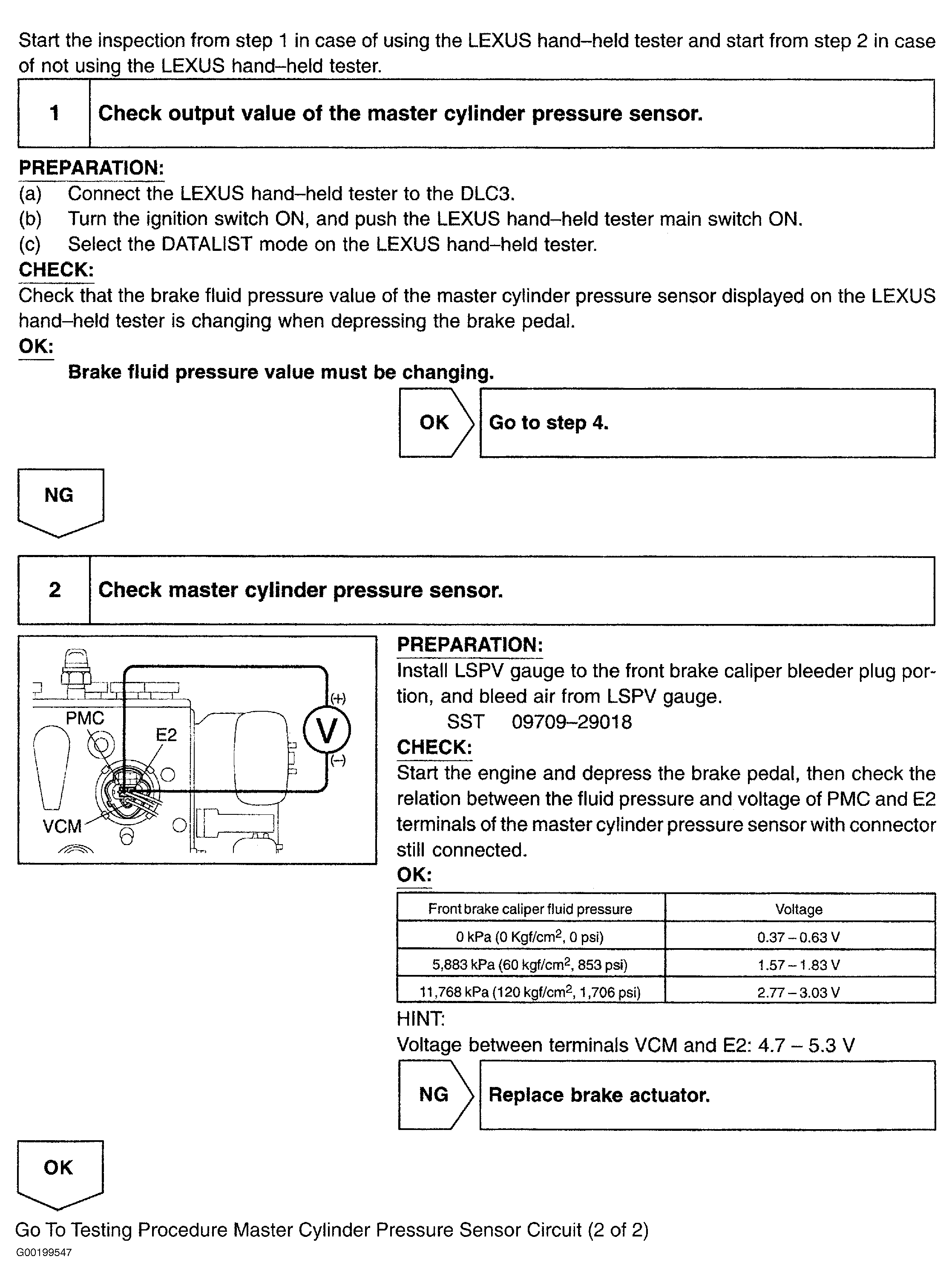 Fig 2: Testing Procedure Master Cylinder Pressure Sensor Circuit (1 Of 2)