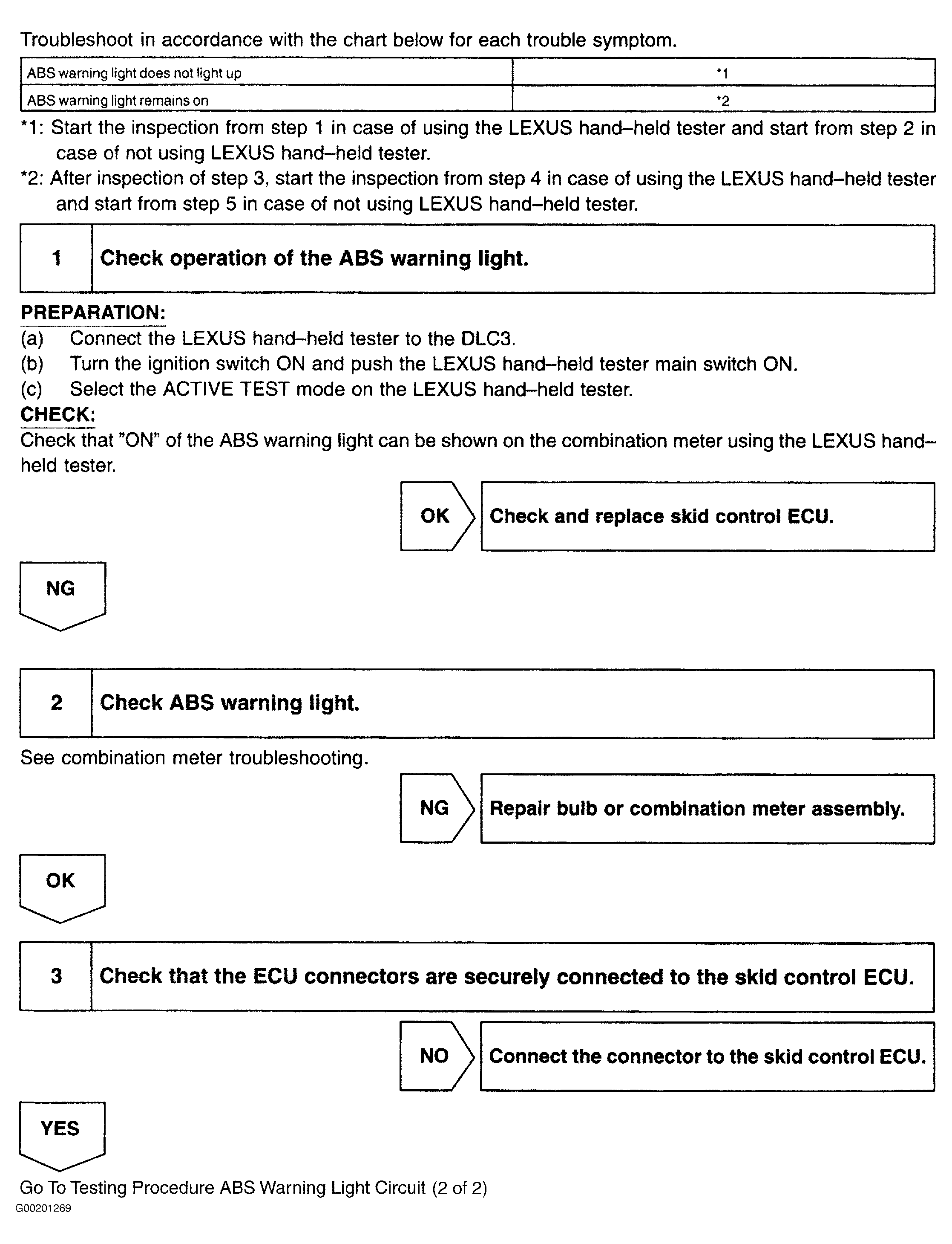 Fig 2: Testing Procedure ABS Warning Light Circuit (1 Of 2)