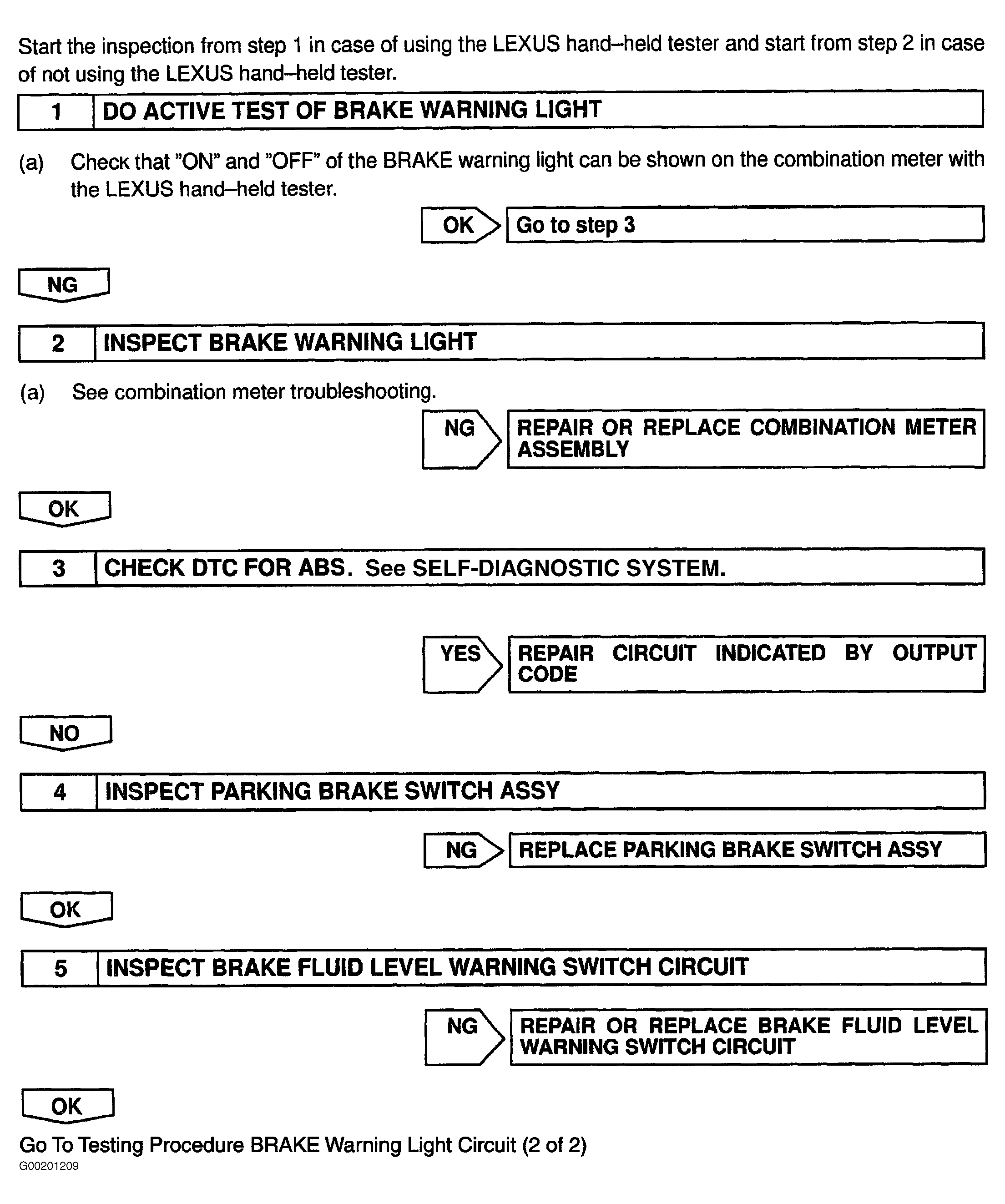 Fig 2: Testing Procedure BRAKE Warning Light Circuit (1 Of 2)