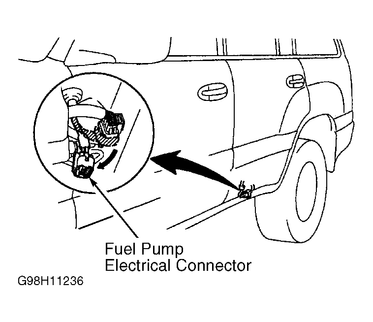 2. On LX470, disconnect electrical connector for fuel pump. See Fig 1. This is electrical connector for fuel pump and fuel gauge sending unit. Go to step  4.