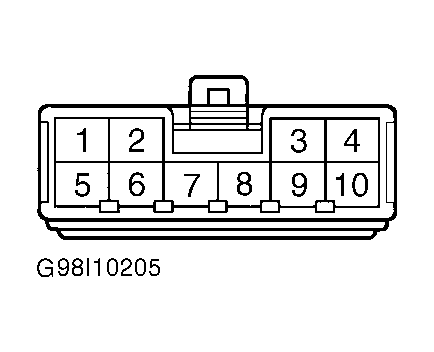 2. Remove trunk trim cover from behind rear seat in luggage compartment. Disconnect fuel pump Electronic Control Unit (ECU) 10-pin connector in left side of luggage compartment. Turn ignition on. Measure voltage between ground and terminal No. 10 (Black/Red wire) at fuel pump ECU connector. See Fig 1. If voltage is 9-14 volts, go to next step. If voltage is not 9-14 volts, check for open or short in wiring harness between EFI main relay and fuel pump ECU. See WIRING DIAGRAMS article.