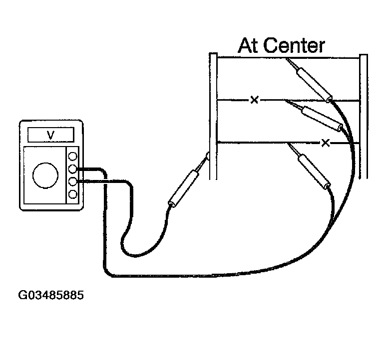 If the heat wire is not broken, the voltmeter indicates 0 V at the positive (+) end of the heat wire but the voltage gradually increases to about 12 V as the meter probe moves to the other end.