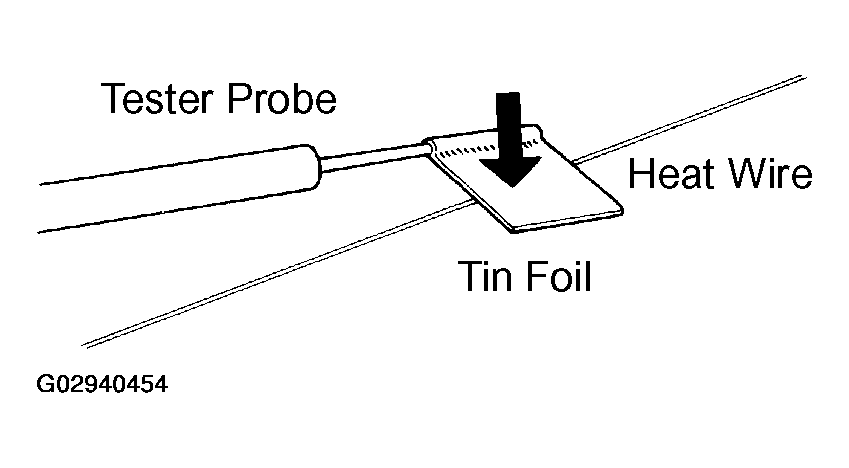 - Inspect the voltage at the center of each heat wire, as shown in Fig 7.DEFOGGER WIRE
