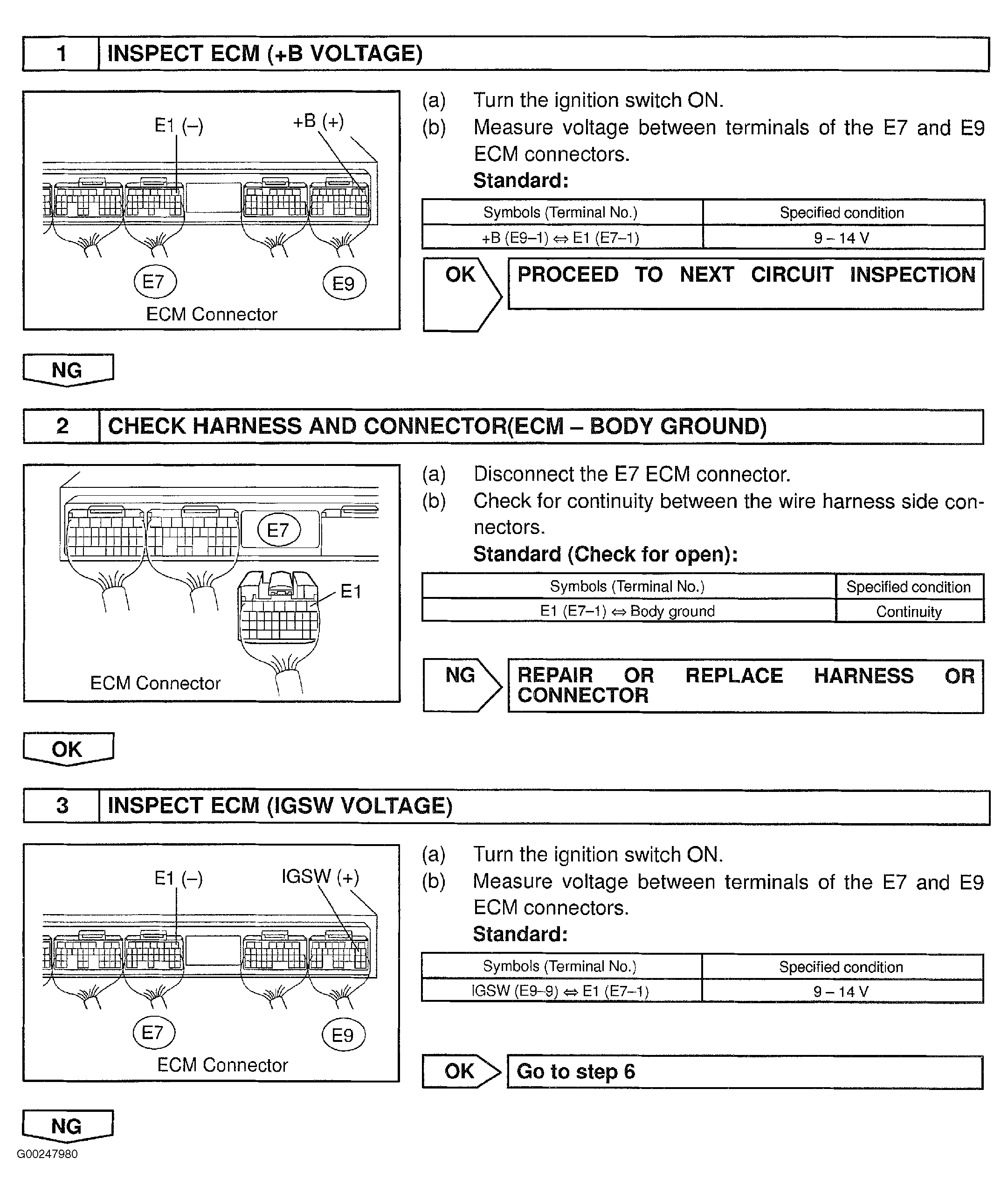 For wiring diagram, see Fig 1. For wire color identification, see WIRE COLOR IDENTIFICATION table. For diagnosis and repair, see Fig 2-Fig 4 .