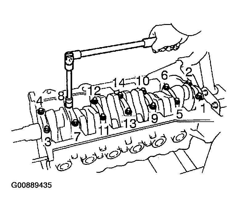 Fig 17: Removing Bearing Cap Bolts In Sequence