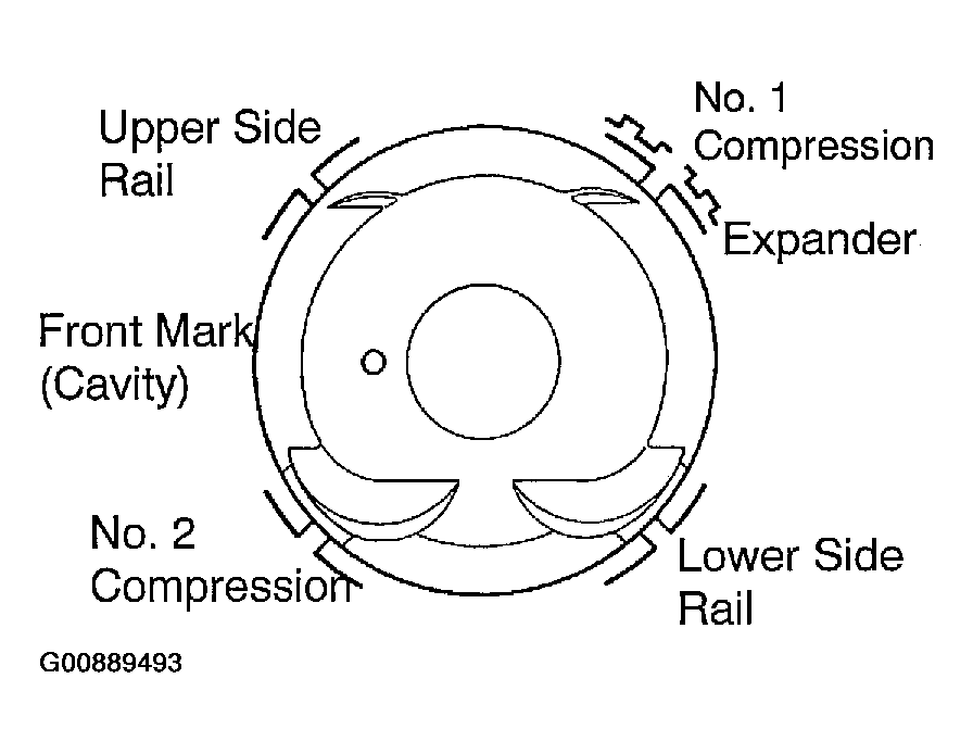 - Using a piston ring expander, install the 2 compression rings with the code mark facing up.