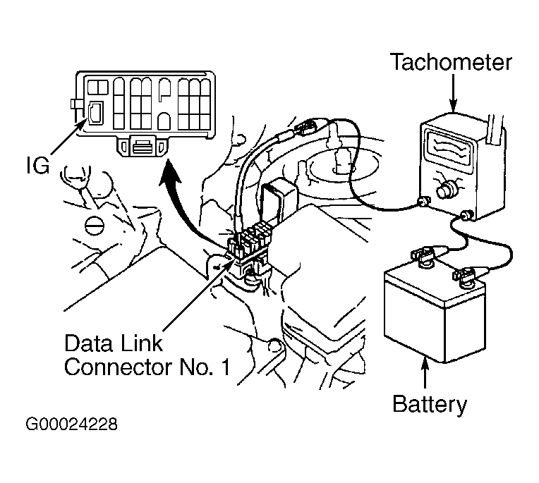 - Install Jumper Wire (SST 09843-18020) between terminals TC and E1 on DLC1 located near driver's side strut tower. See Fig 3. Apply parking brake. Place transmission in Neutral. Start engine and allow engine to idle.