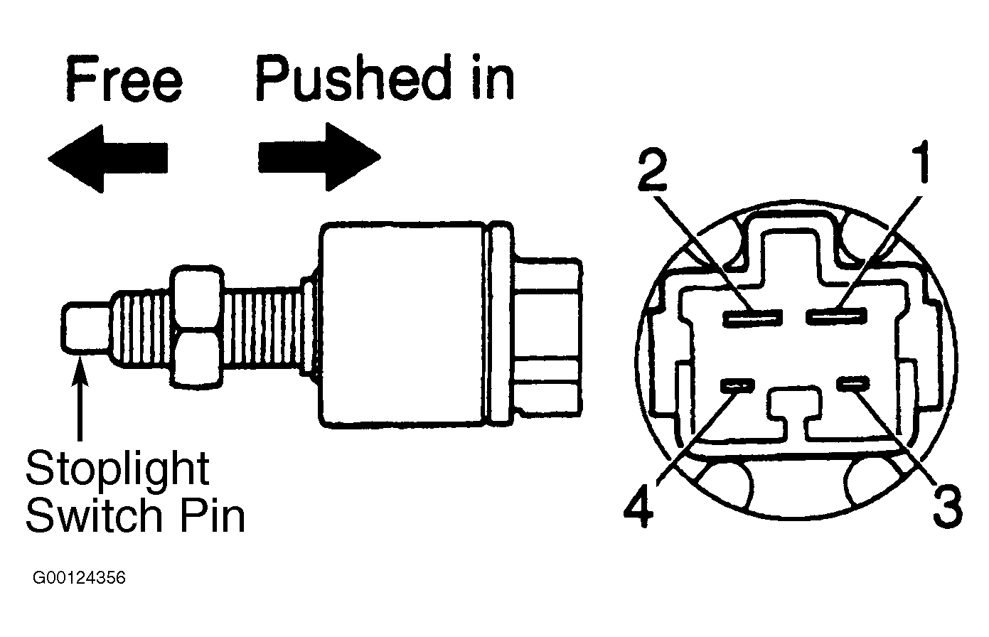 Stoplight Switch Pin Position (1) DVOM Leads Connected Between Terminals Specification