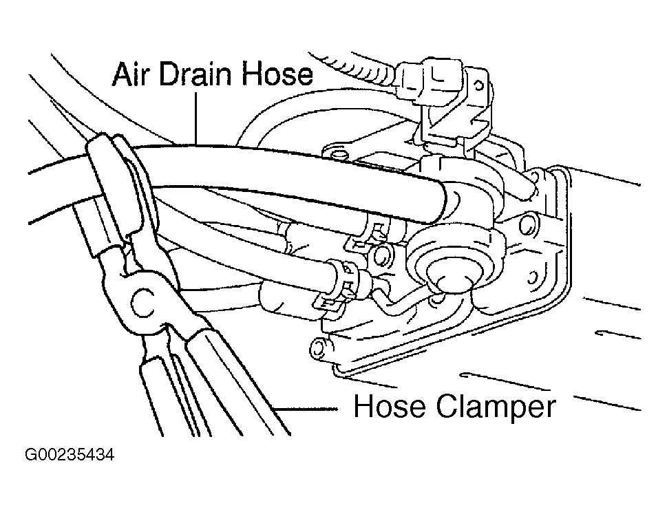- Disconnect vacuum gauge from EVAP service port. Connect pressure gauge to EVAP service port. Install hose clamper on air drain hose at marked position of canister. See Fig 1. Charcoal canister is located under VSV for pressure switching valve. See Figure.