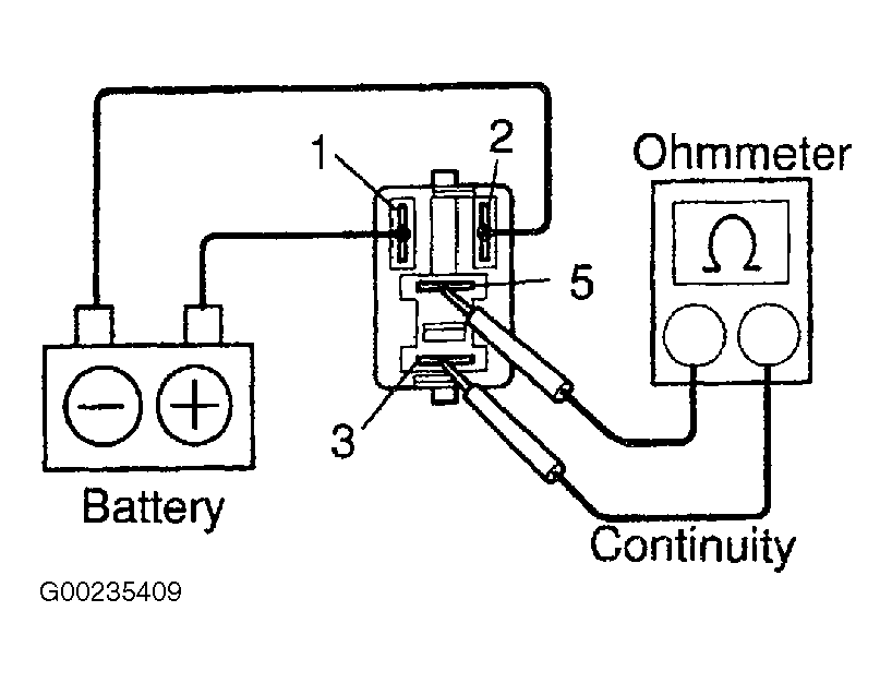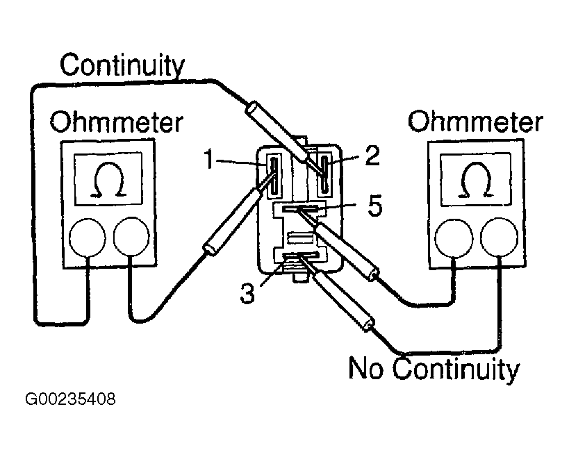 - To test C/OPN relay continuity, use ohmmeter to check for continuity and no continuity between specified terminals on C/OPN relay. See Fig 1. If there is no continuity between terminals No. 1 and 2, or there is continuity between terminals No. 3 and 5, replace relay.