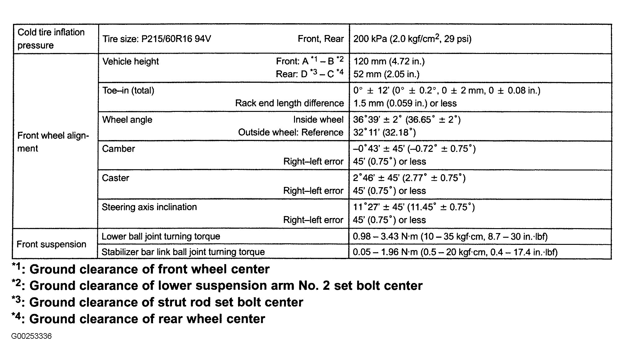 Use illustrations for wheel alignment specifications. See