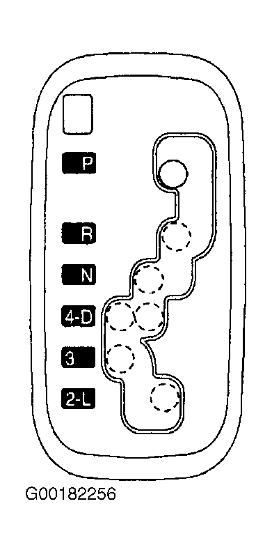 - Ensure shifting lever moves smoothly and can be operated moderately from "P" to "R" with ignition switch ON and brake pedal depressed. See Fig 1.