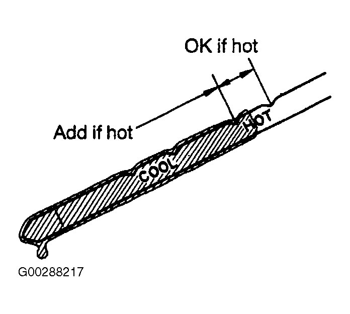 If engine does not run or fluid has been replaced from a dry fill starting point, use COOL range on dipstick as a rough reference.