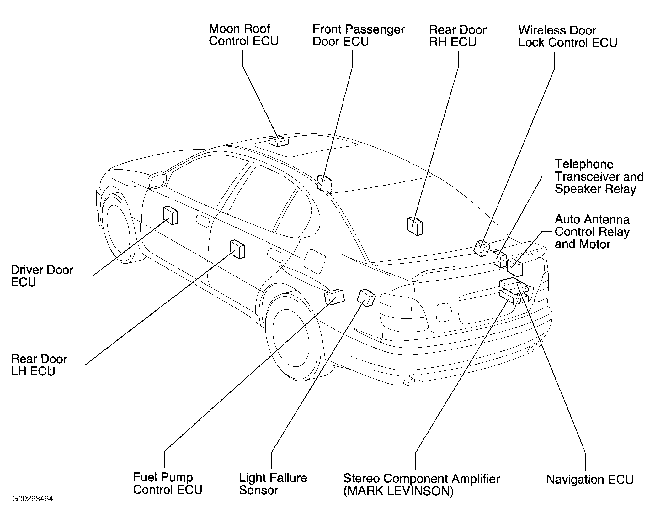 Navigation ECU At right rear corner of luggage compartment. See Figure.