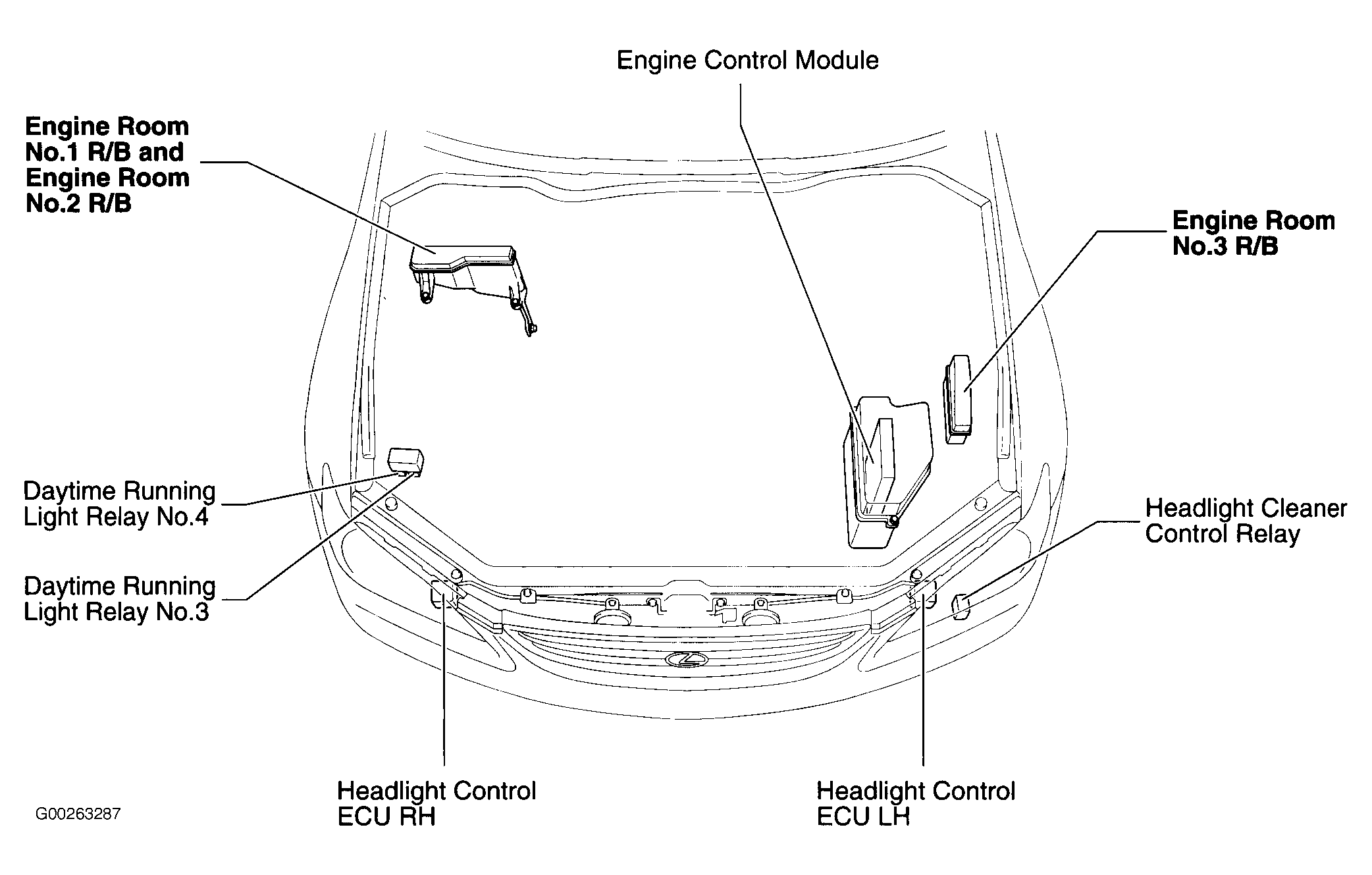 Headlight Control ECU (Left) Behind left headlight assembly. See Figure.