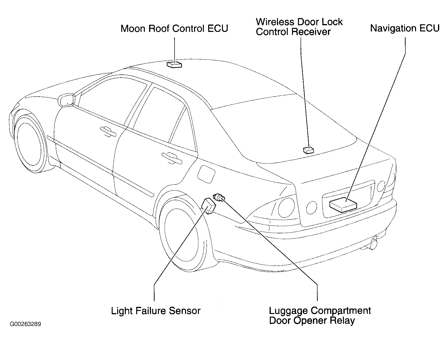 Navigation ECU (Sedan) Rear of luggage compartment. See Figure.