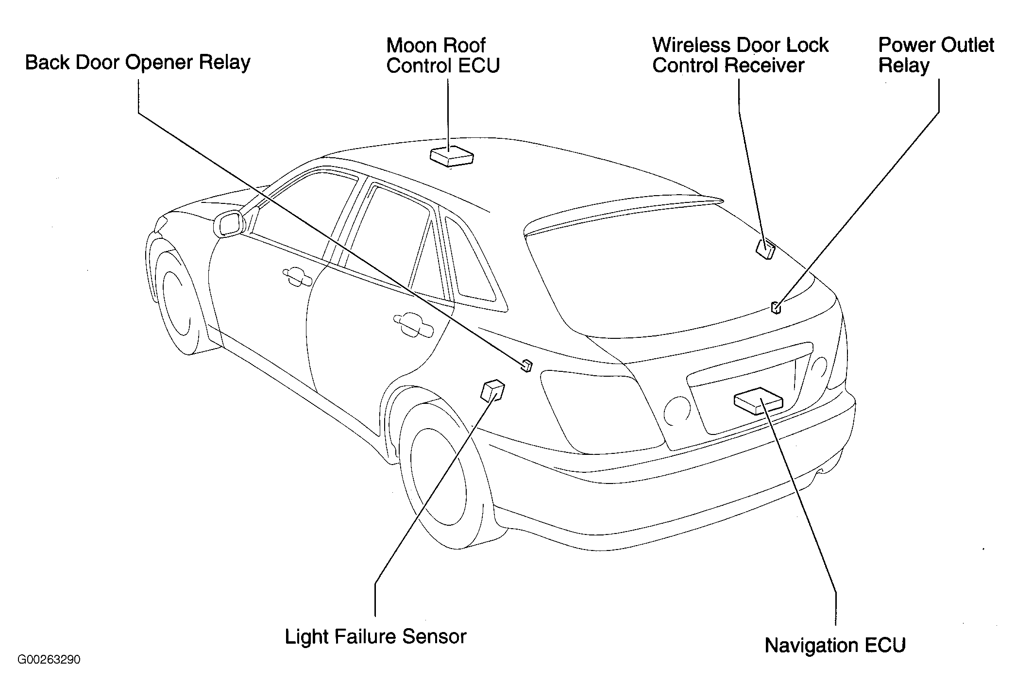 Moon Roof Control ECU (Wagon) On front center of roof. See Figure.