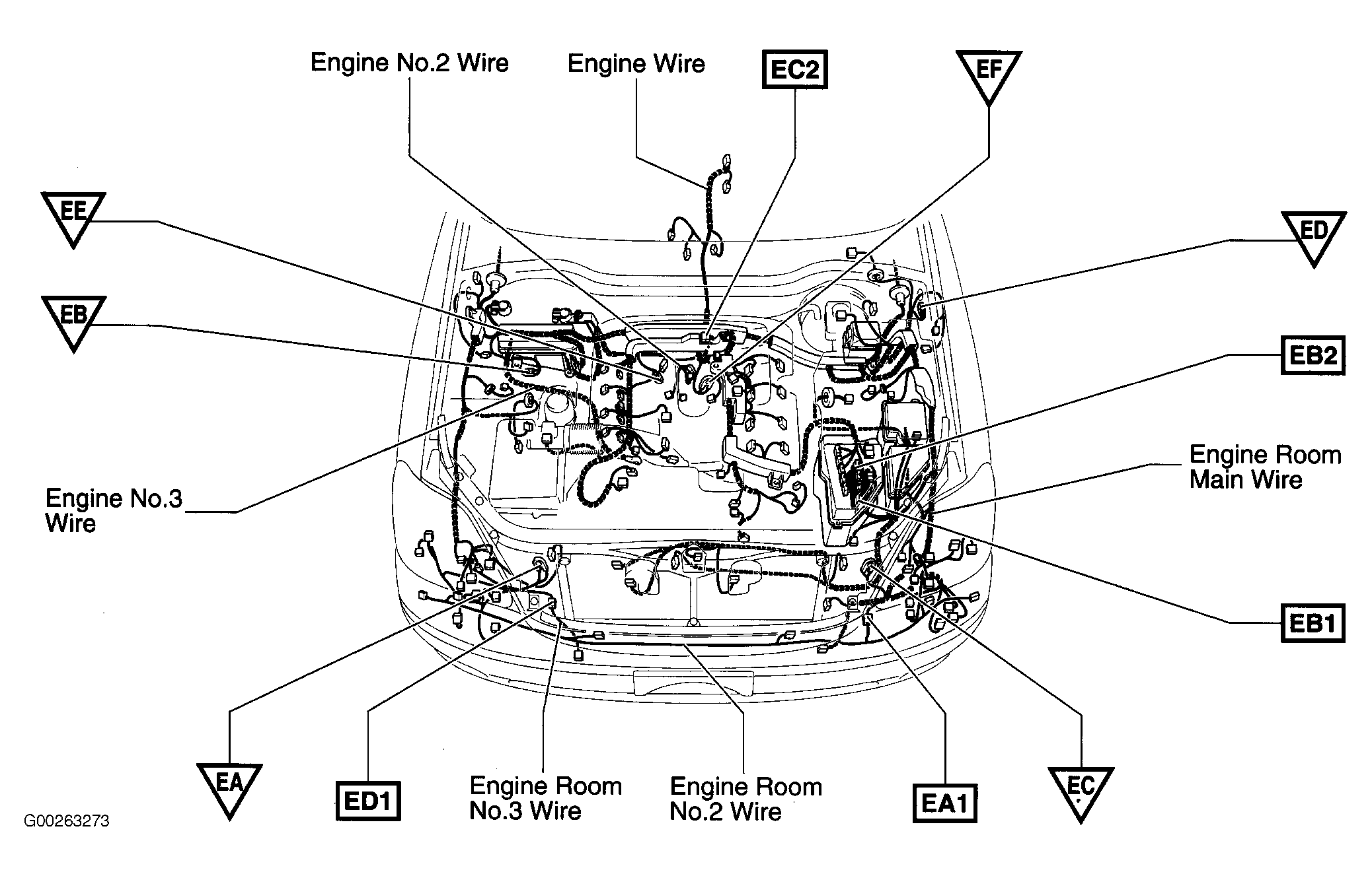| E9 | In engine harness, under engine room No. 1 J/B. See Figure. |