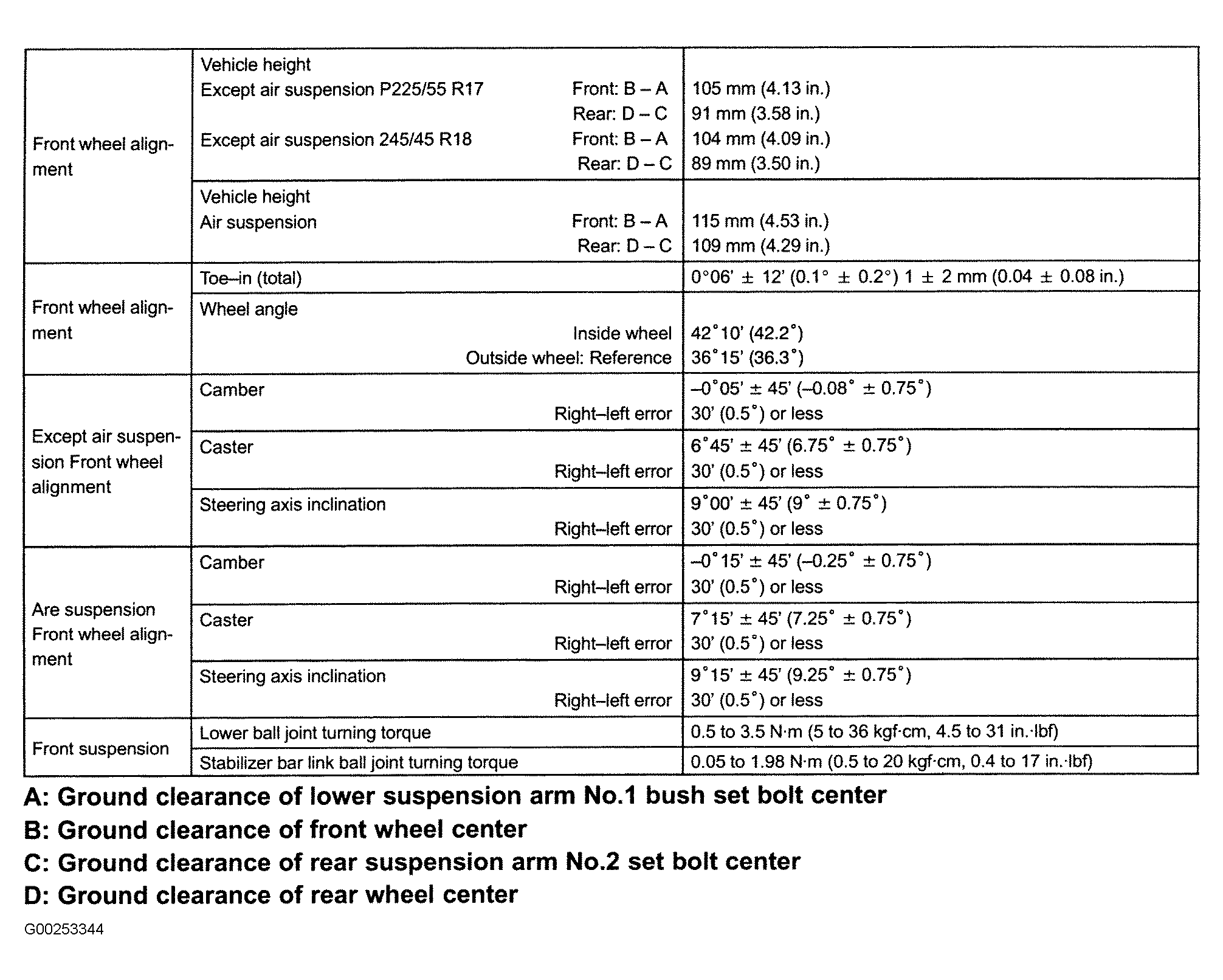 Fig 1: Front Wheel Alignment Specifications