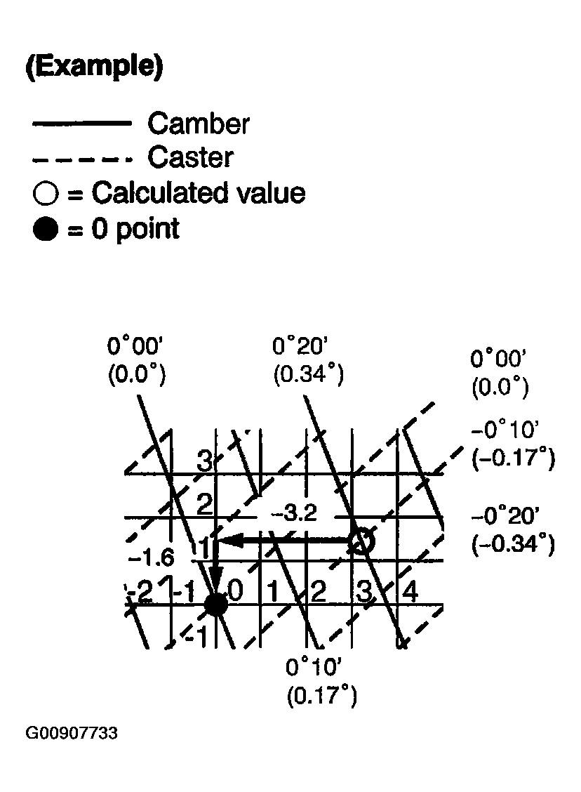 - Caster: 3°05' - 3°15' = -0°10'