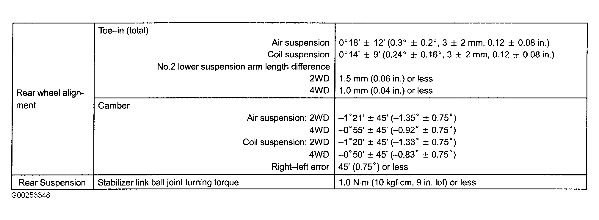 Fig 2: Rear Wheel Alignment Specifications (RX 330)