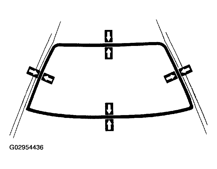 - Lightly press the front surface of the glass to ensure that it is securely fit to the vehicle body.NOTE: Check that the vehicle body and glass have a small gap between them.