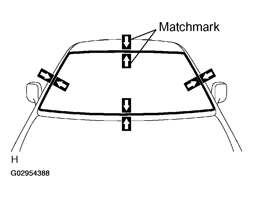- Place matchmarks over the glass and vehicle body on the locations indicated in Fig 12