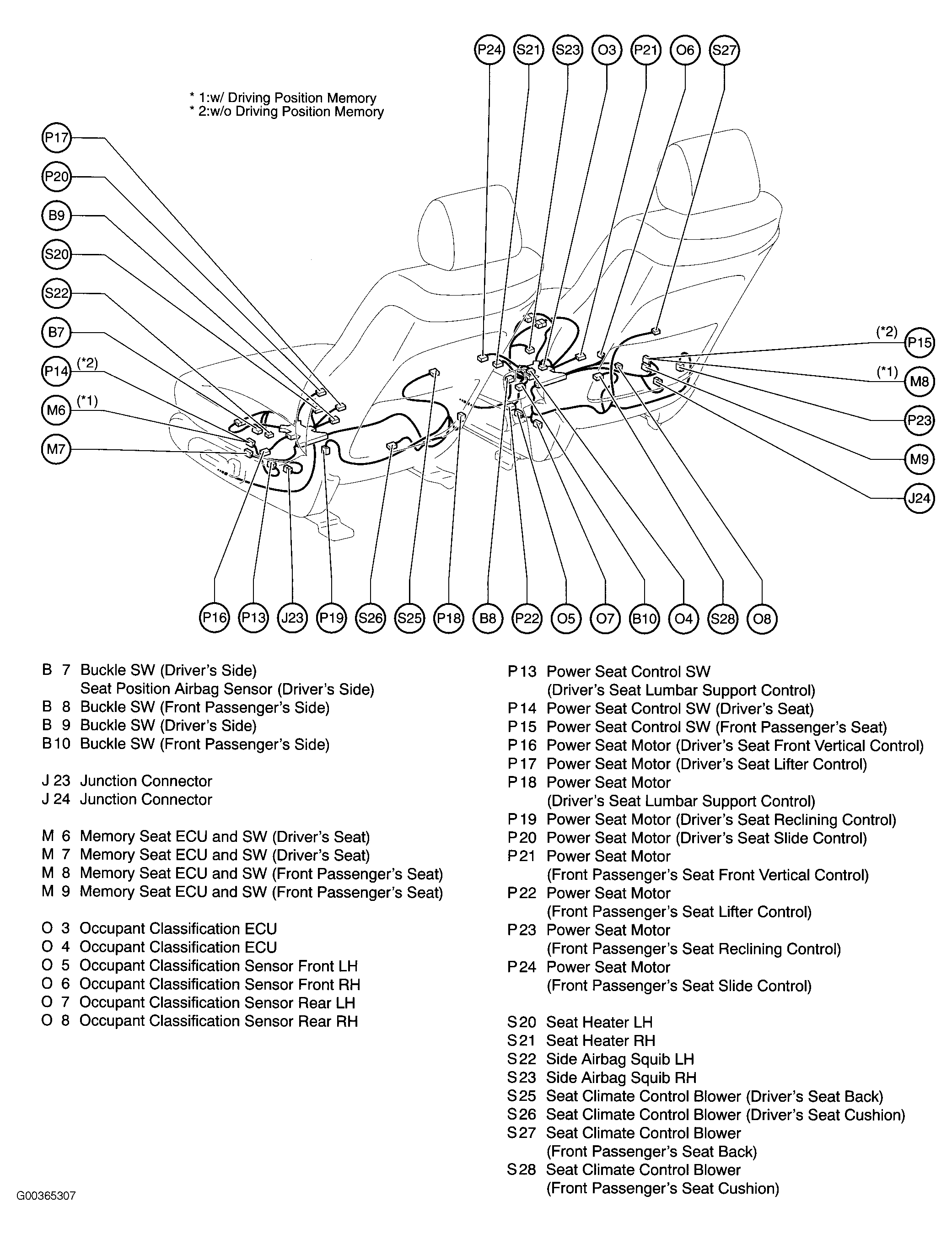 | Memory Seat ECU (Driver's Seat) | Below left front seat.Figure. |