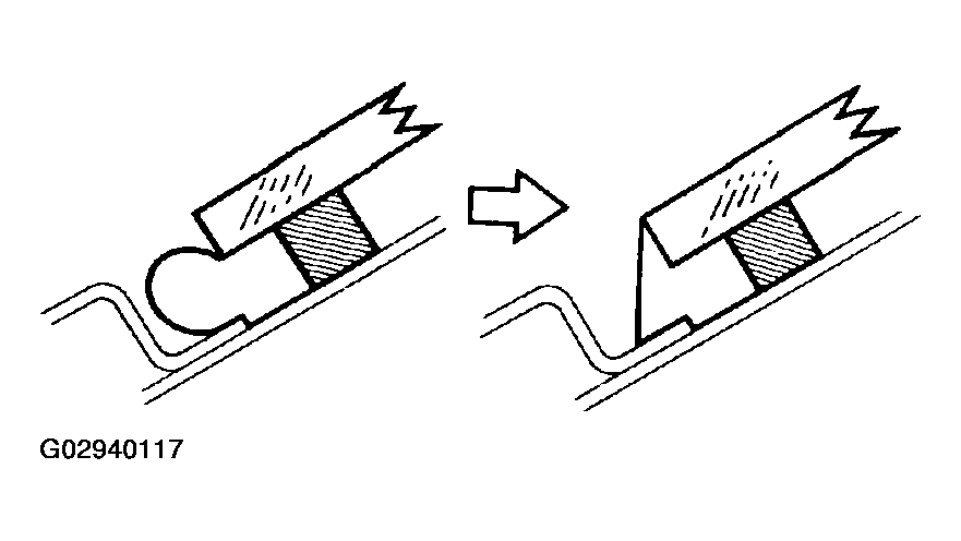 NOTE: If the rivet is not positioned perpendicularly it will bend the mandrel. When the trigger is then pulled, it may damage SST. - INSTALL ROOF DRIP SIDE FINISH CENTER MOLDING (See INSTALLATION )