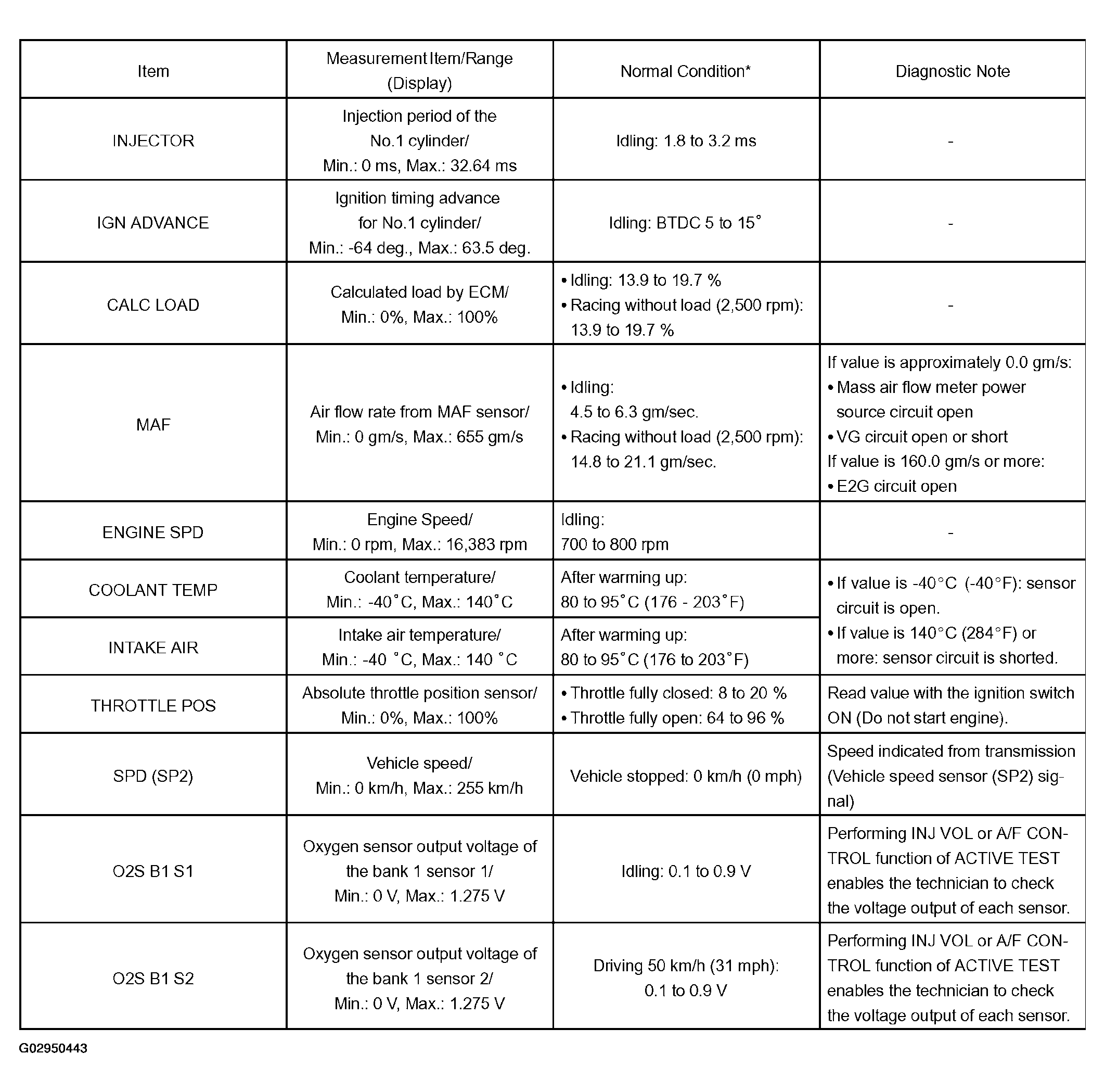 If the TEST DATA value appearing on the scan tool is out of the standard value, the O2S is malfunctioning. If it is within the standard value, the O2S is functioning normally. However, if the value is on the borderline of the standard value, the O2S may malfunction very soon.