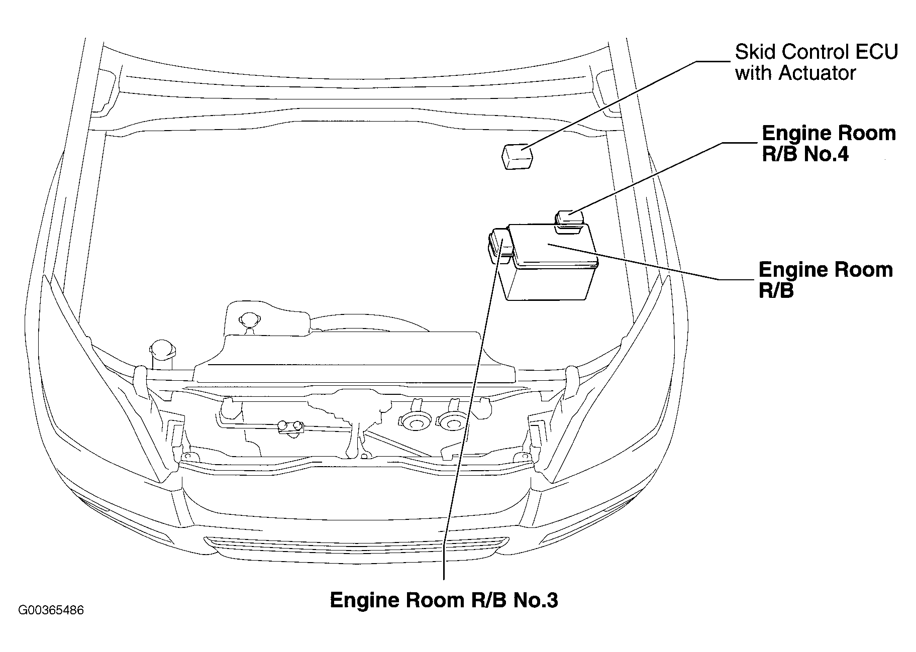 Skid Control ECU & Actuator Left rear of engine compartment.Figure.