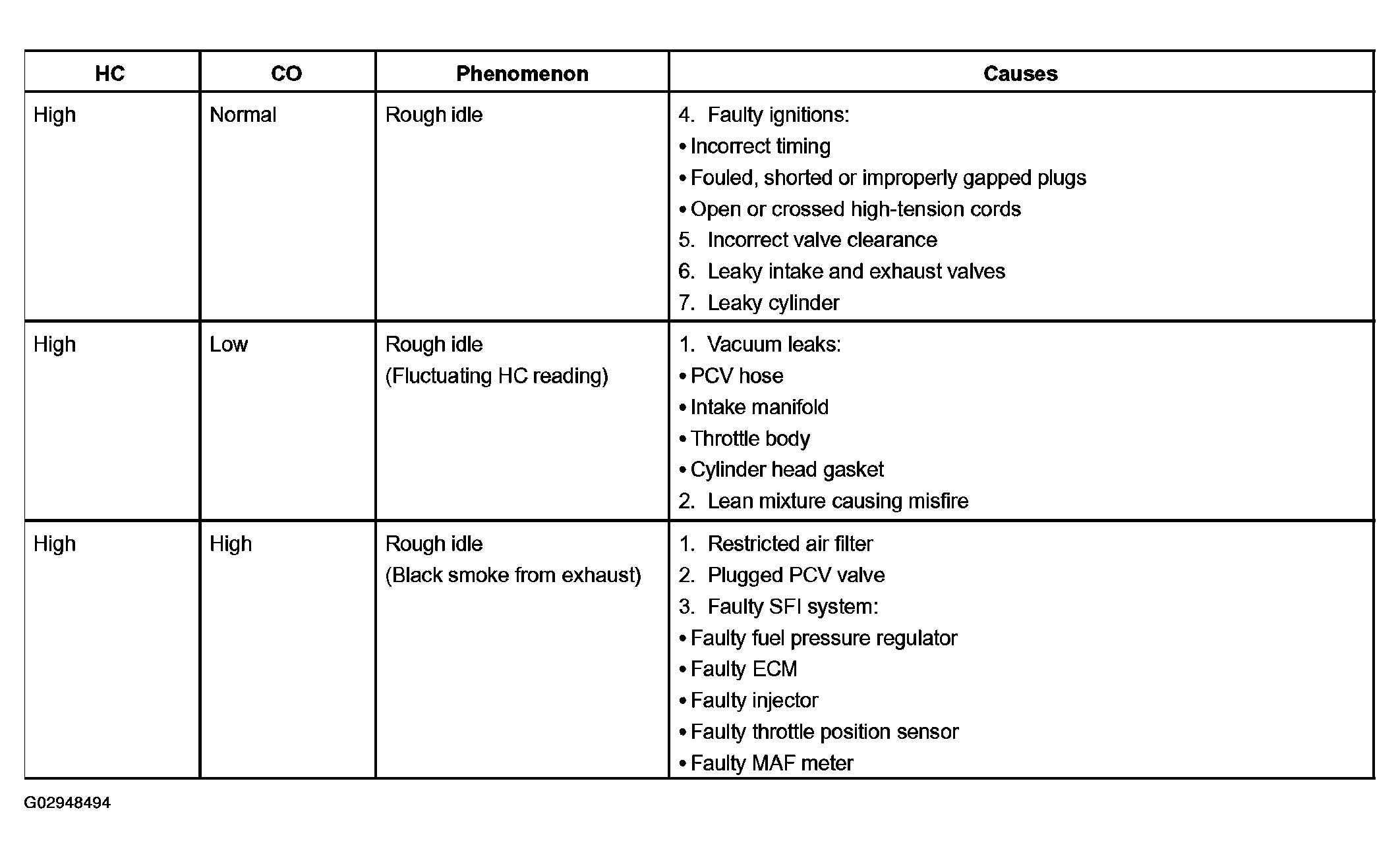 Engine Mechanical: Co/HC: Inspection