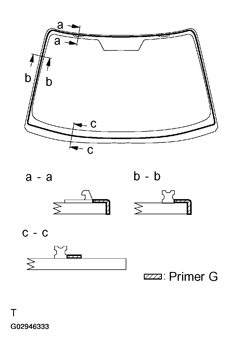 1. Using a brush or sponge, coat the edge of the glass and the contact surface with Primer G as shown in Fig 9 .