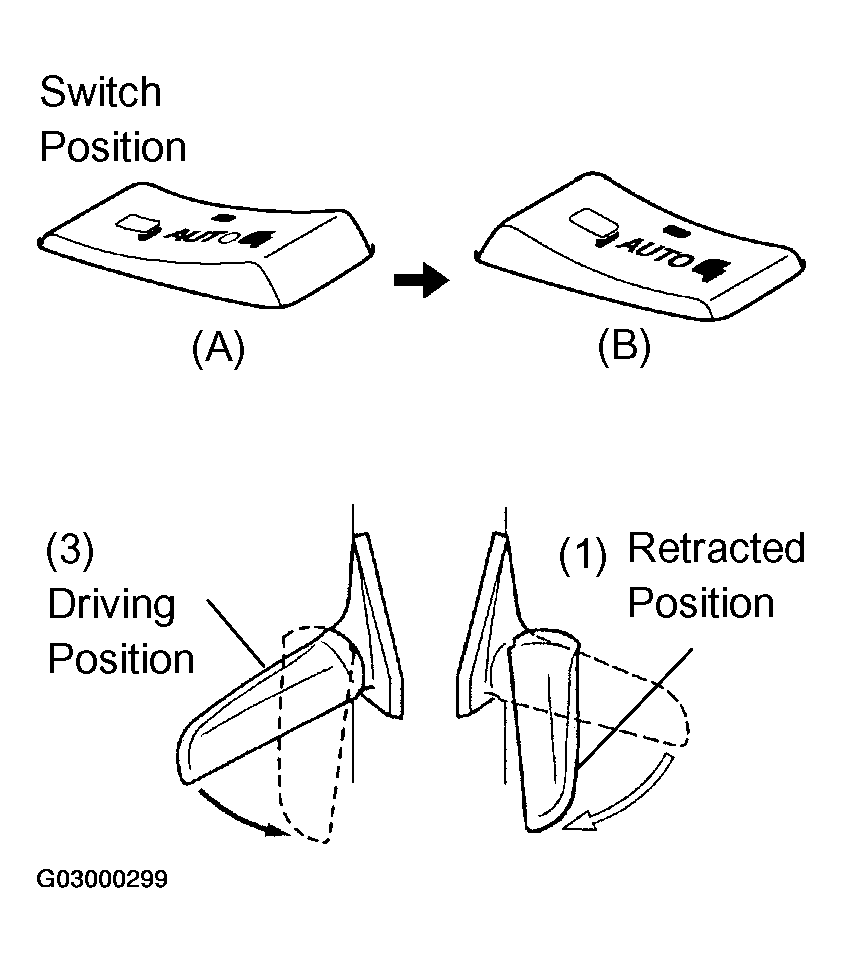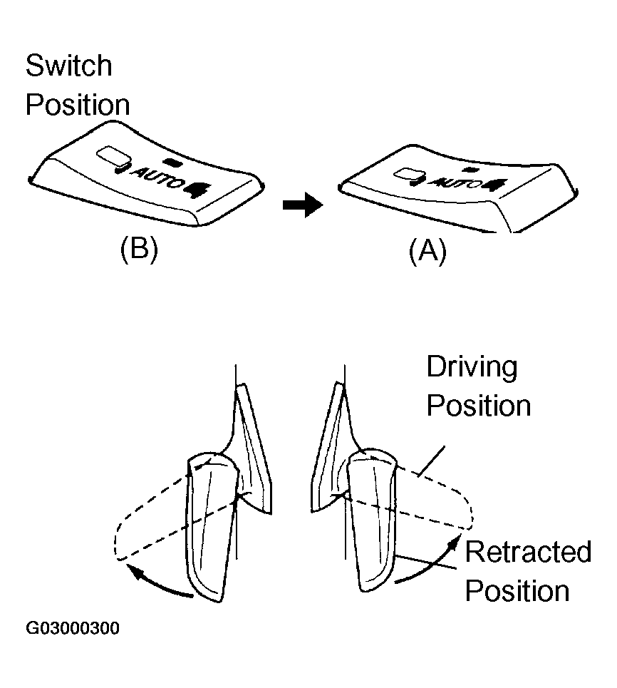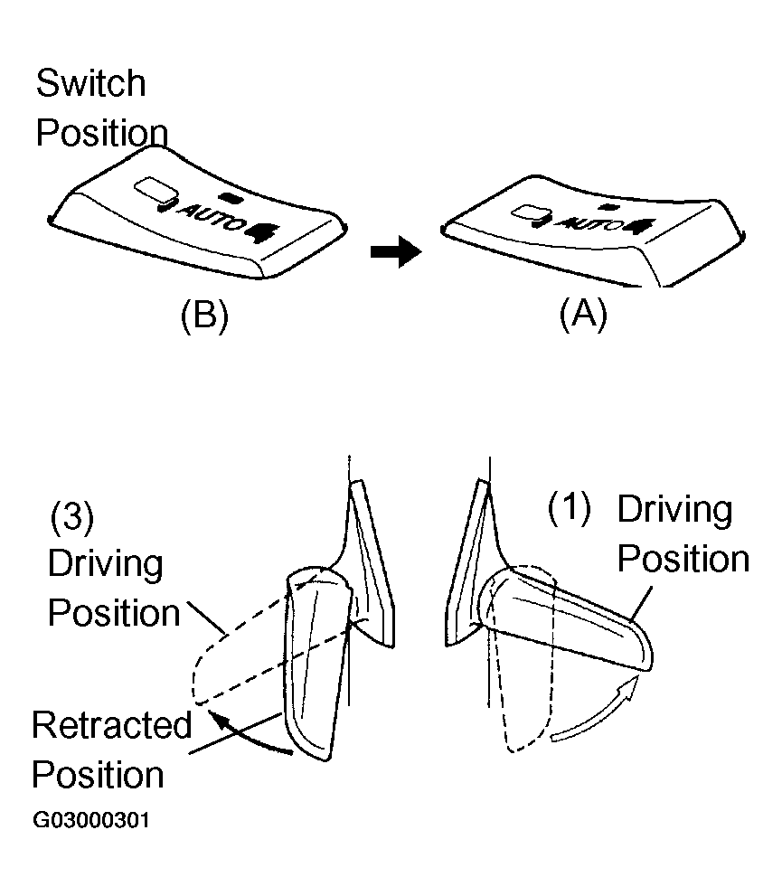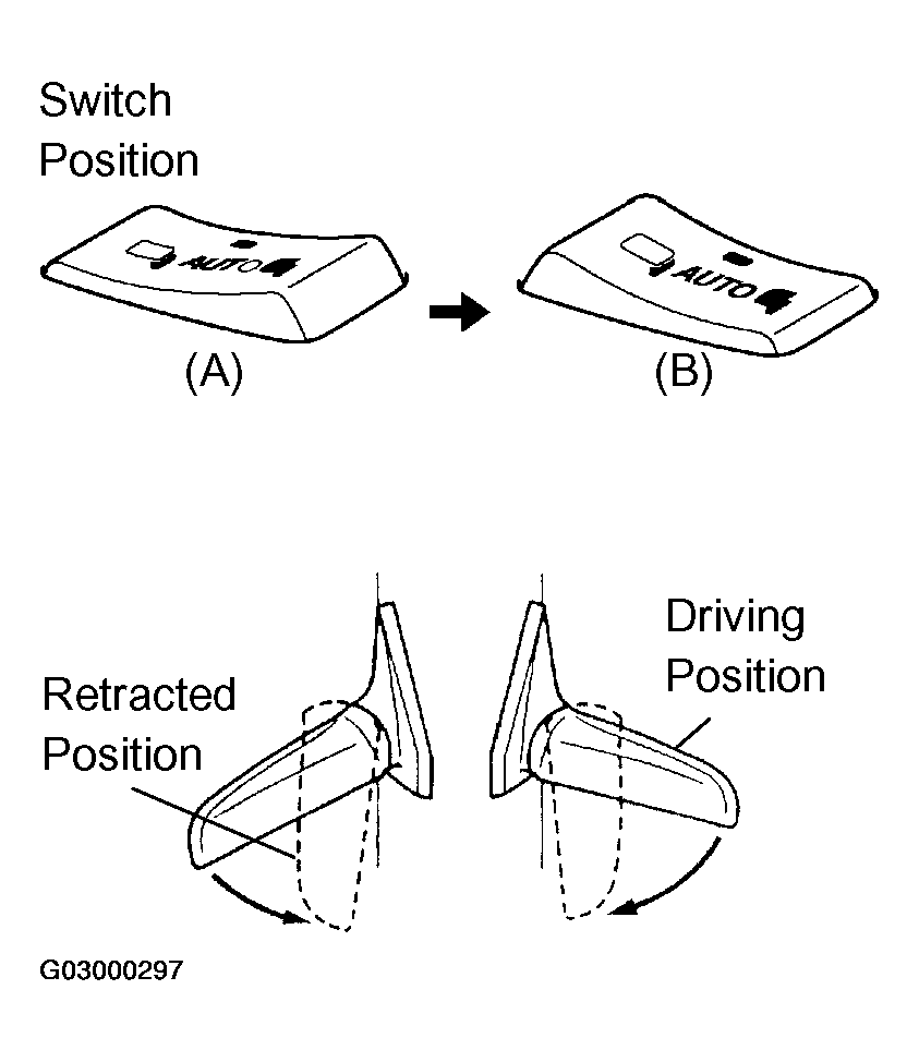 2. Check that the right and left mirrors move from the driving position to the retracted position.