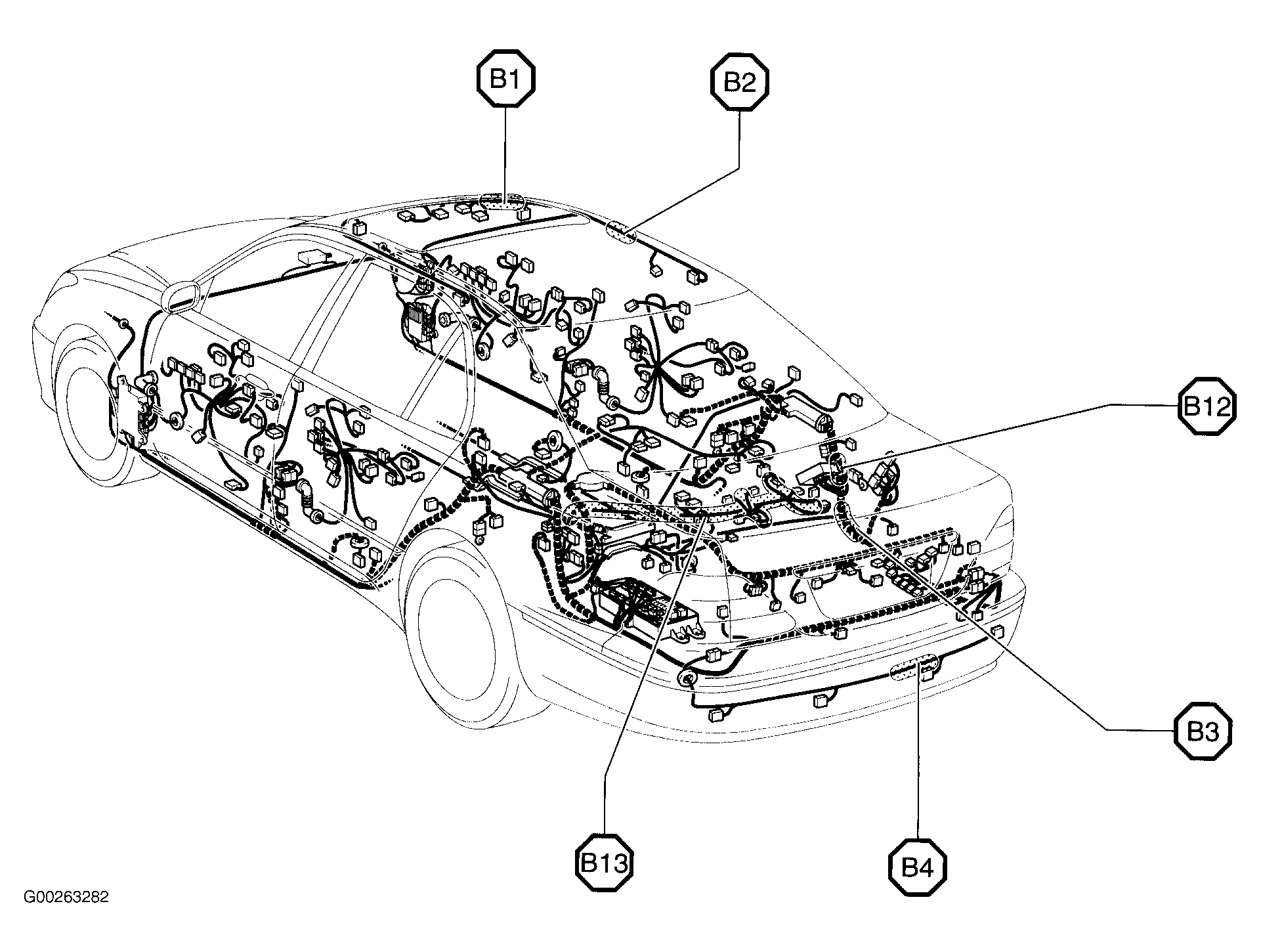| B12 | In body harness, near navigation ECU connectors. See Figure. |
