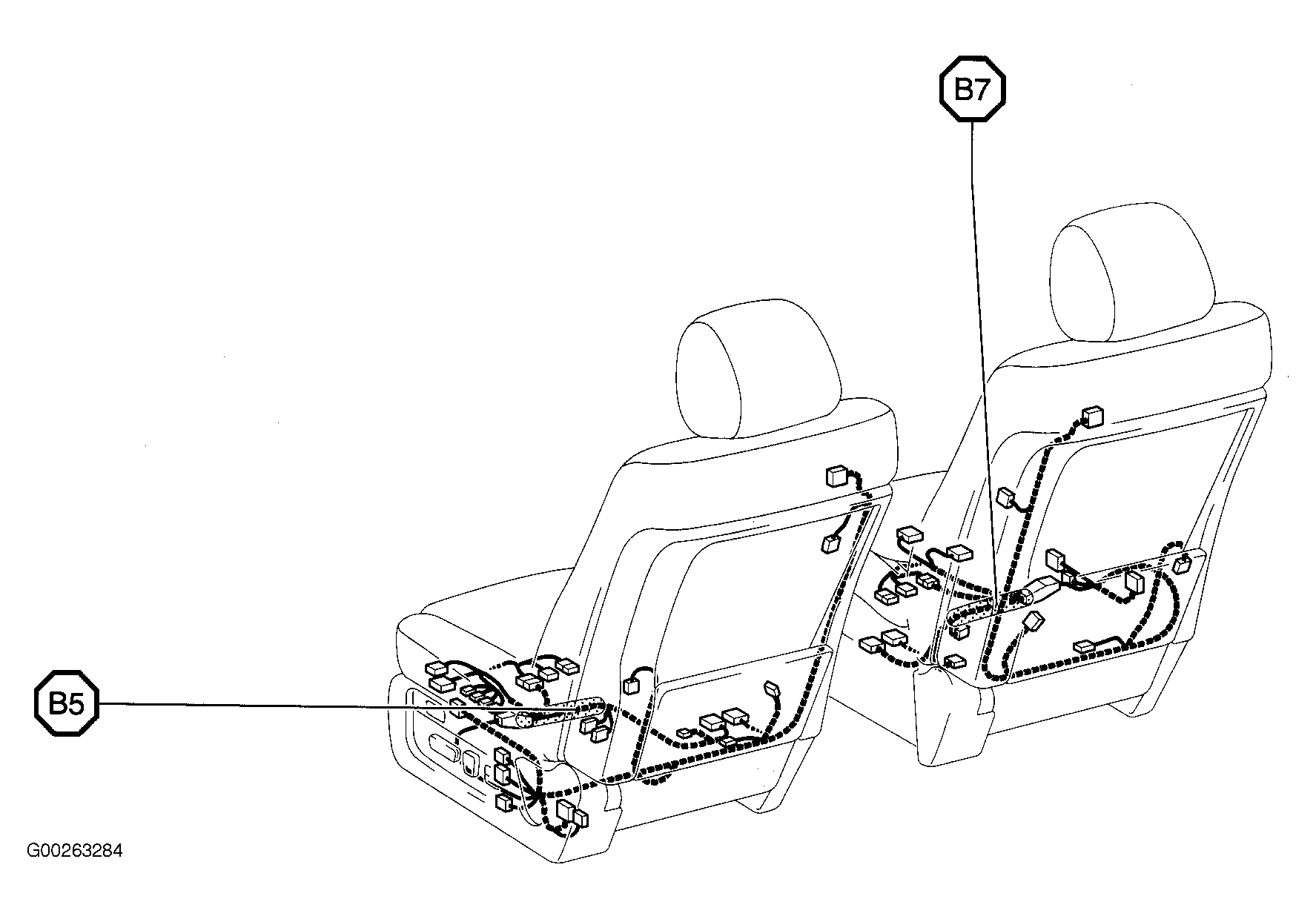| B5 | In body harness, under front of left front seat. See Figure. |