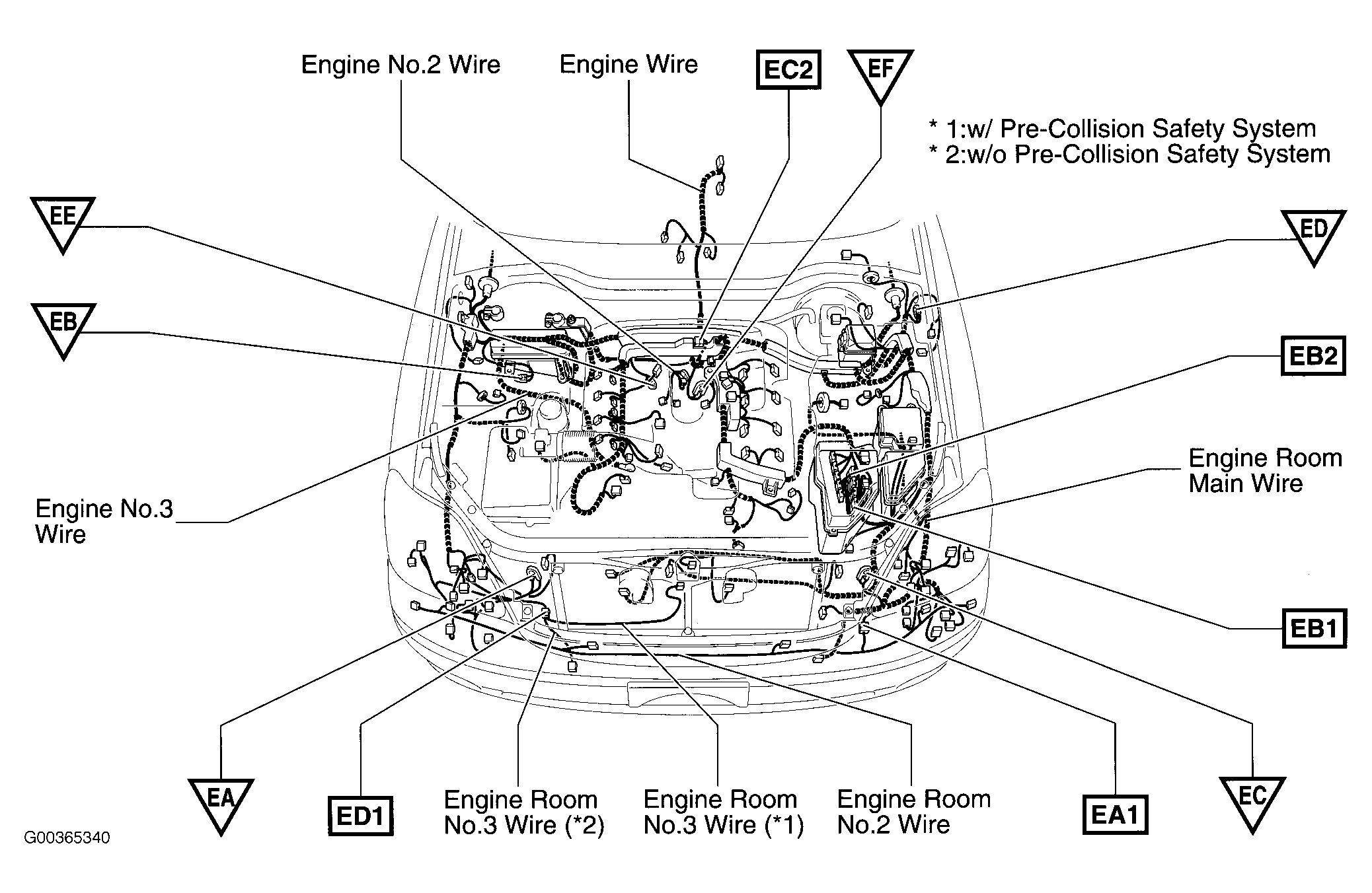 | E9 | In engine harness, under engine room No. 1 J/B. See Figure. |