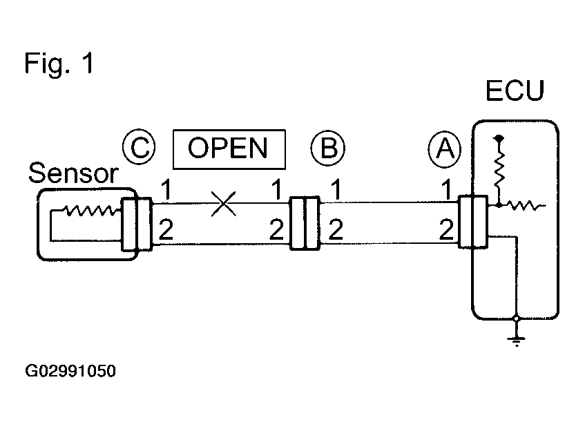 Therefore, it is found out that there is an open circuit between terminal 1 of connector "A" and terminal 1 of connector "C".