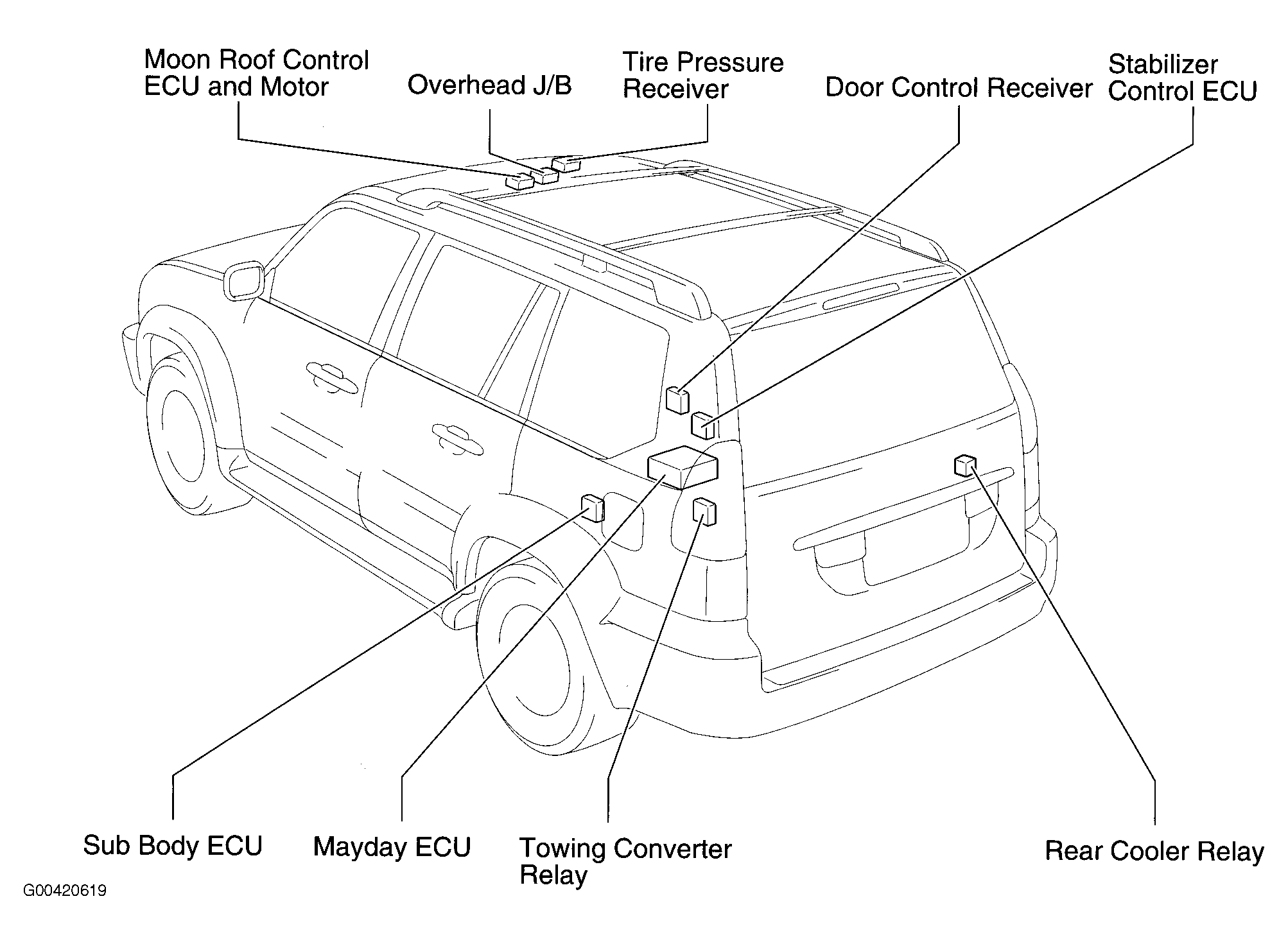 | Stabilizer Control ECU | At left rear of vehicle. See Figure. |
