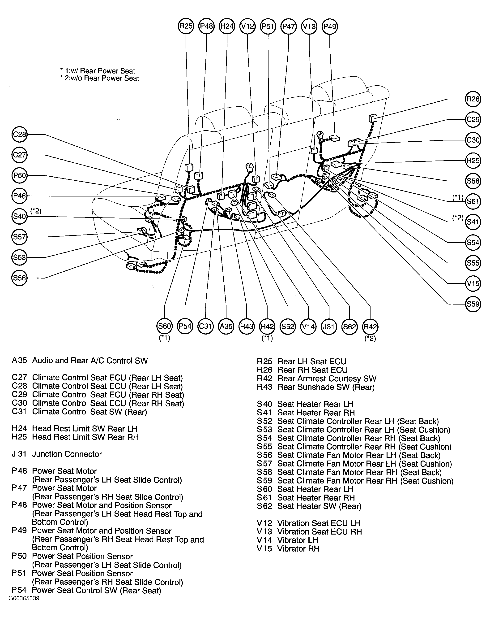 | Climate Control Seat ECU (Rear LH Seat) | In left side of rear seat. See Figure. |
