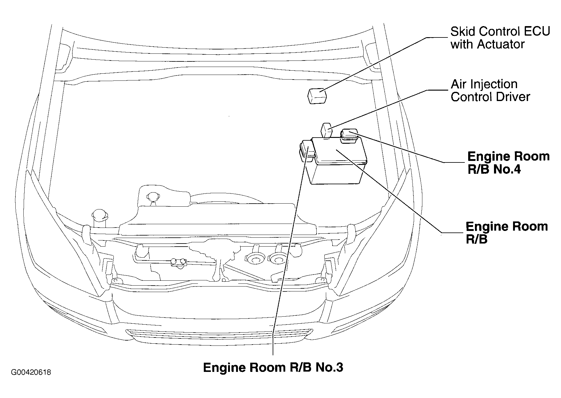 Skid Control ECU & Actuator Left rear of engine compartment. See Figure.