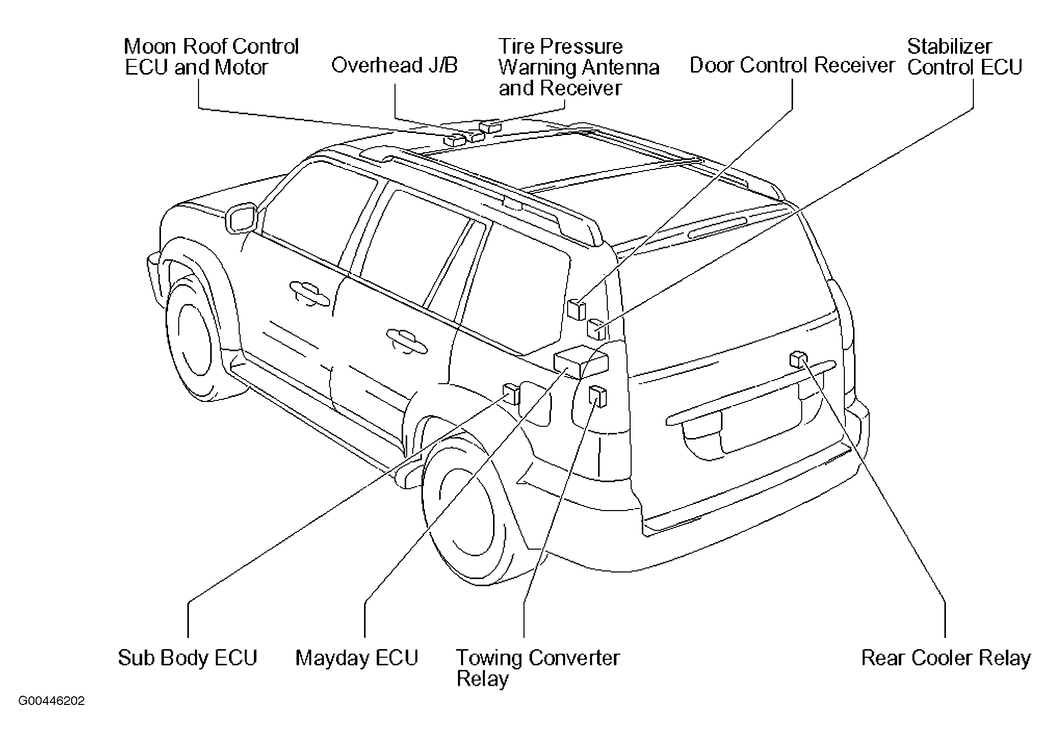 Stabilizer Control ECU At left rear of vehicle. See Figure.