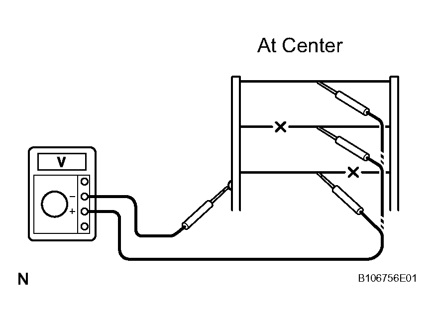 If there is approximately 10 V, the wire may be faulty between the center of the wire and the wire and on the battery side. If there is no voltage, the wire may be faulty between the center of the wire and the wire end on the ground side.