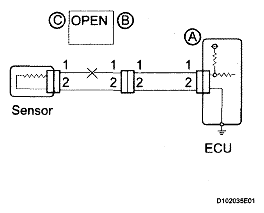 - In a circuit in which voltage is applied to the ECU connector terminal, an open circuit can be checked by conducting a voltage check.