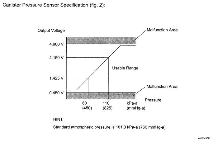 (b) Canister pressure sensor Indicates pressure as voltages. ECM supplies regulated 5 V to canister pressure sensor, and uses feedback from sensor to monitor EVAP system pressure (refer to Fig 5).