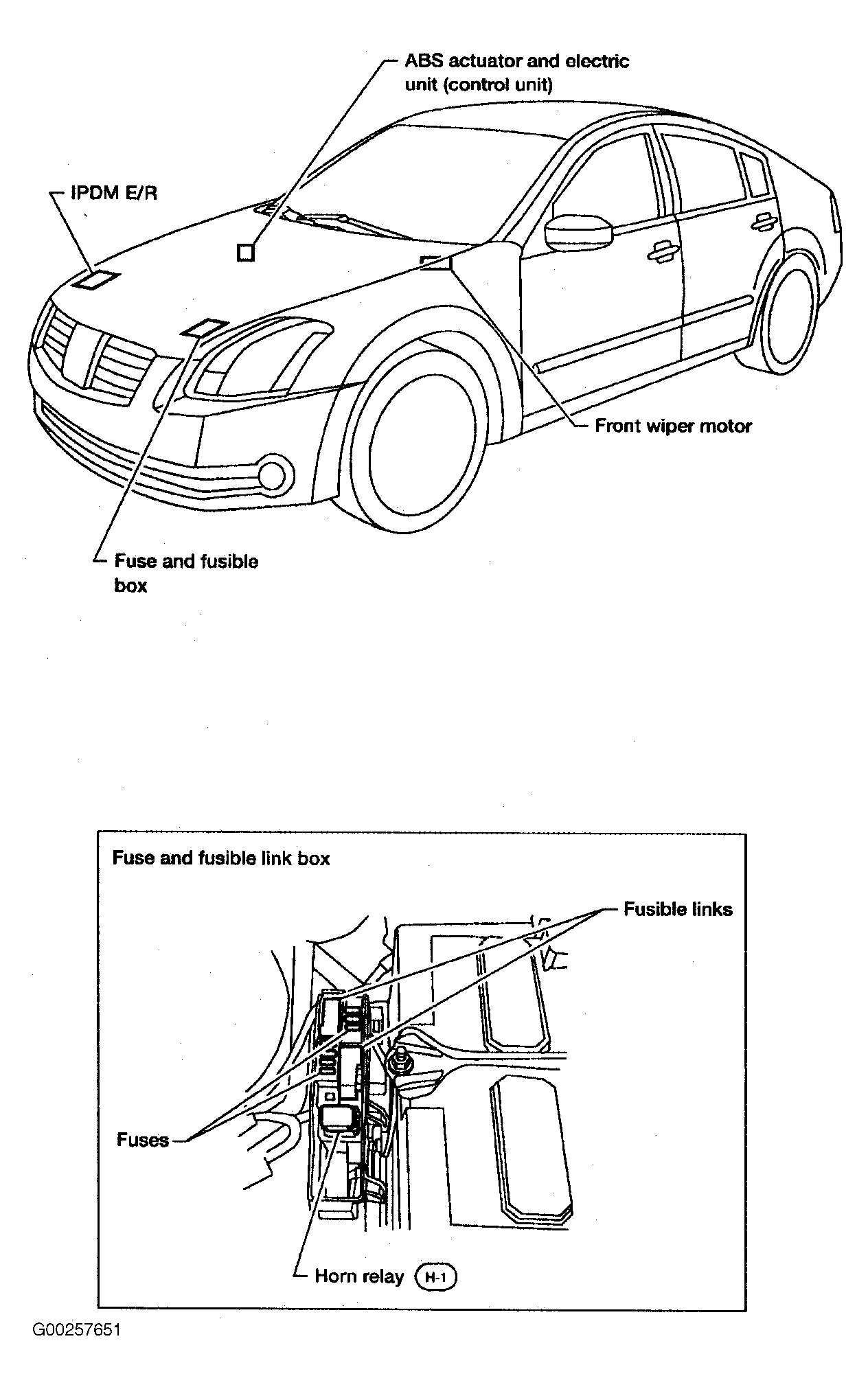 | ABS Actuator & Electric Unit (Control Unit) | At right rear corner of engine compartment. See Figure . |