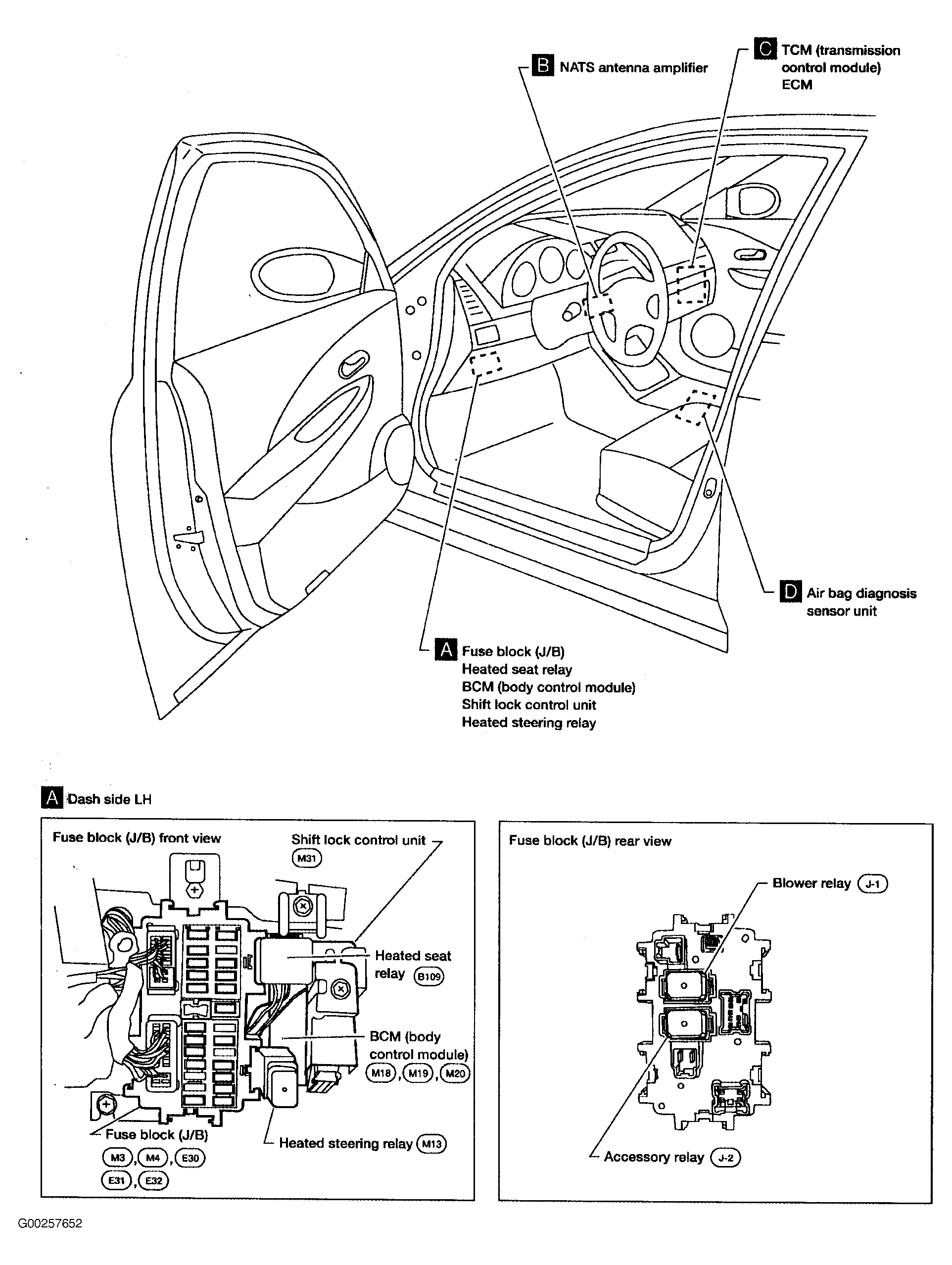 | Shift Lock Control Unit | Near fuse block (J/B). See Figure . |