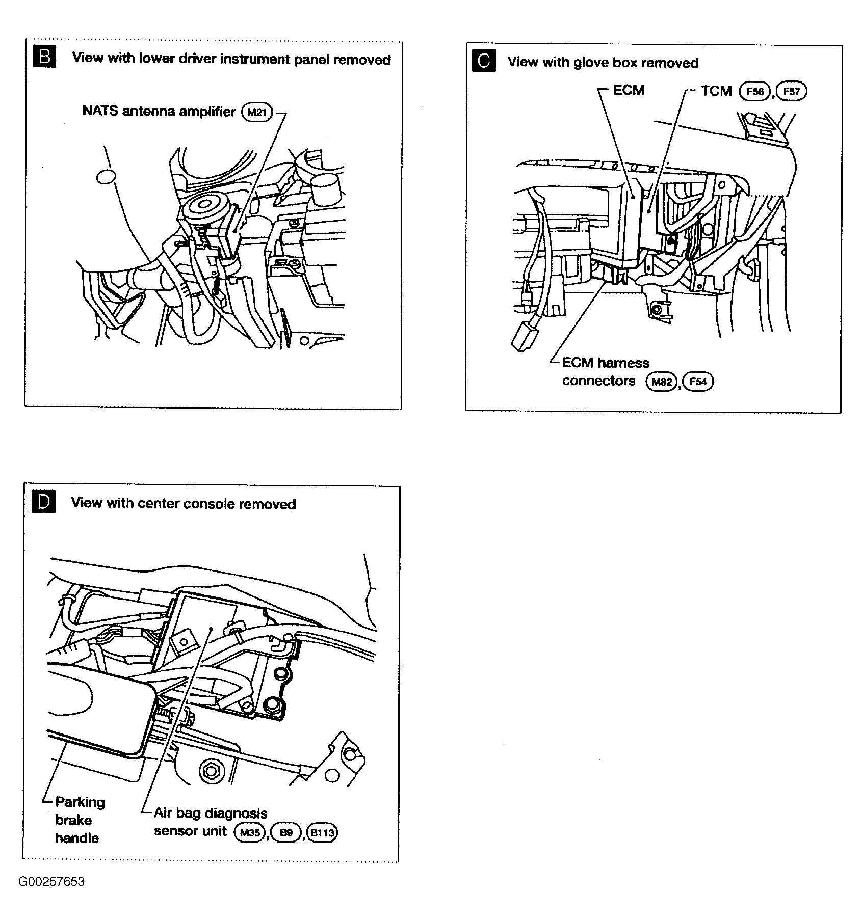 | Air Bag Diagnosis Sensor Unit | Under rear of floor center console. See Figure . |