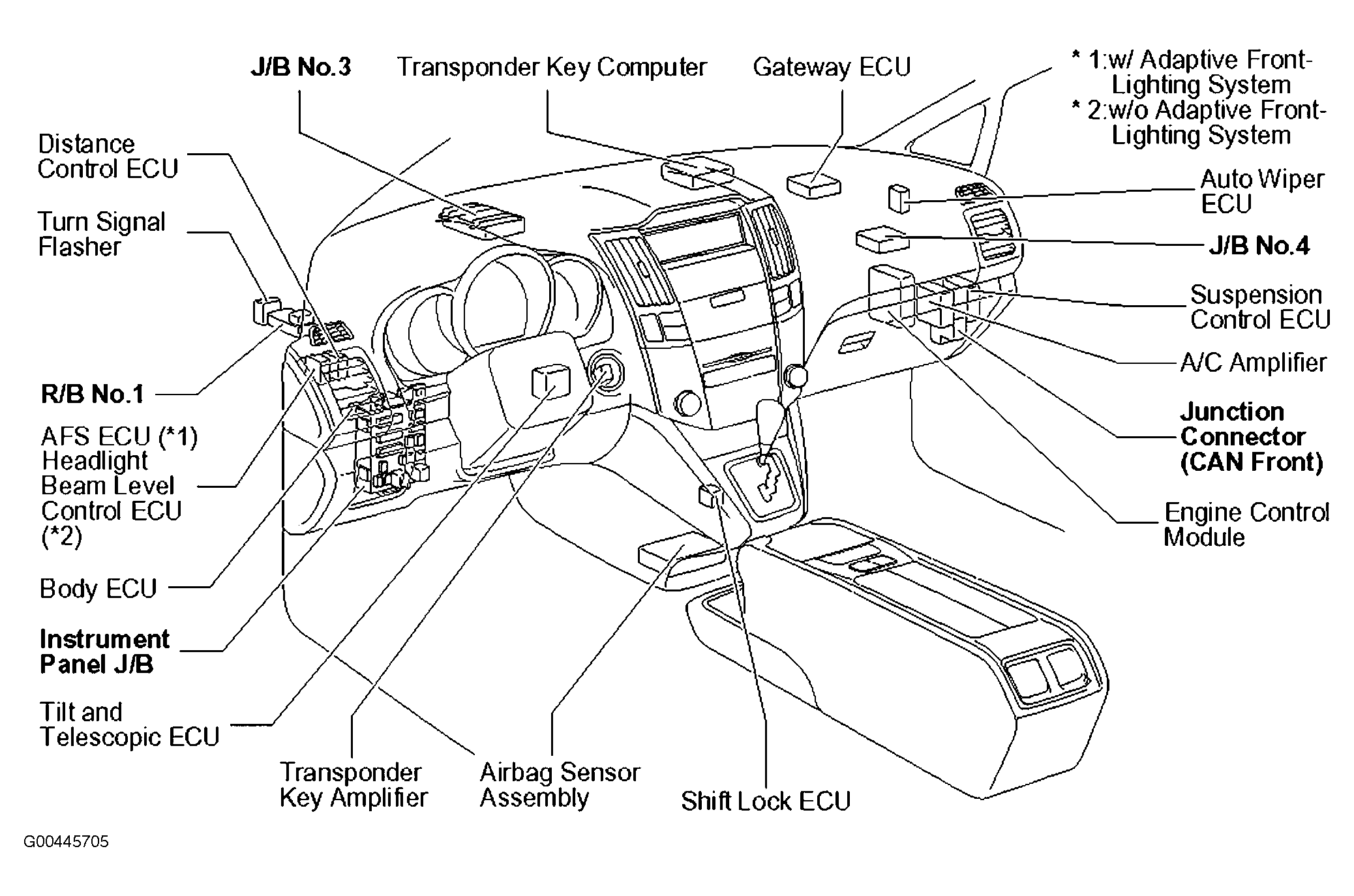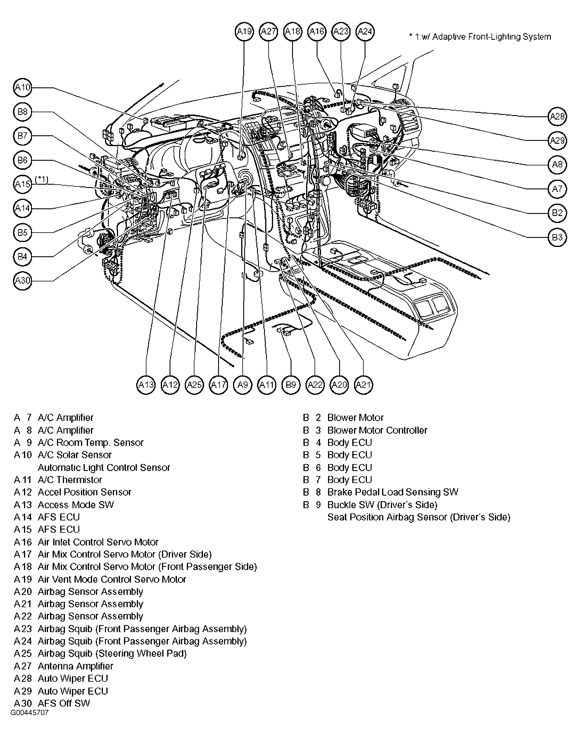 AFS ECU Behind left side of dash. See Figure.
