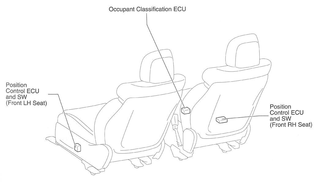 | Position Control ECU & SW (Front RH Seat) | Right side of front passenger's seat. See Figure. |